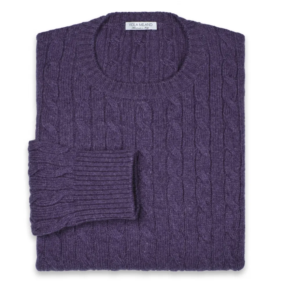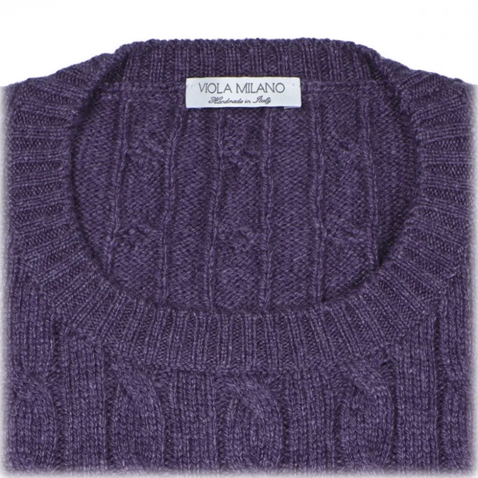 Viola Milano – Cable Knit Loro Piana Cashmere Sweater – Viola – Handmade in Italy – Luxury Exclusive Collection