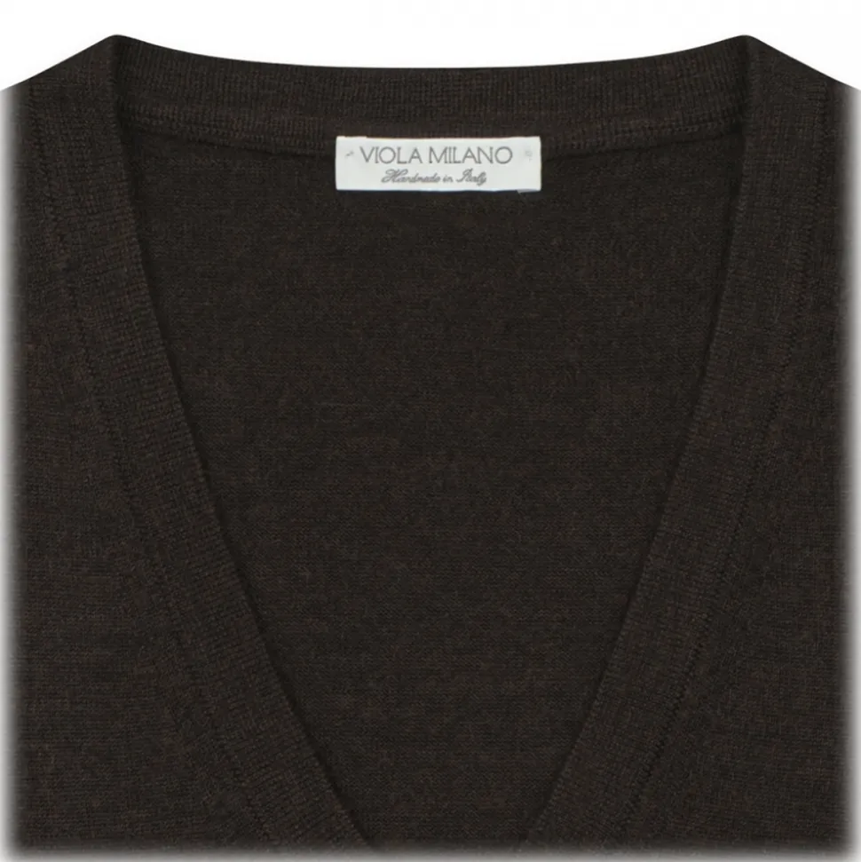 Viola Milano – Cashmere V-Neck Sweater – Brown – Handmade in Italy – Luxury Exclusive Collection