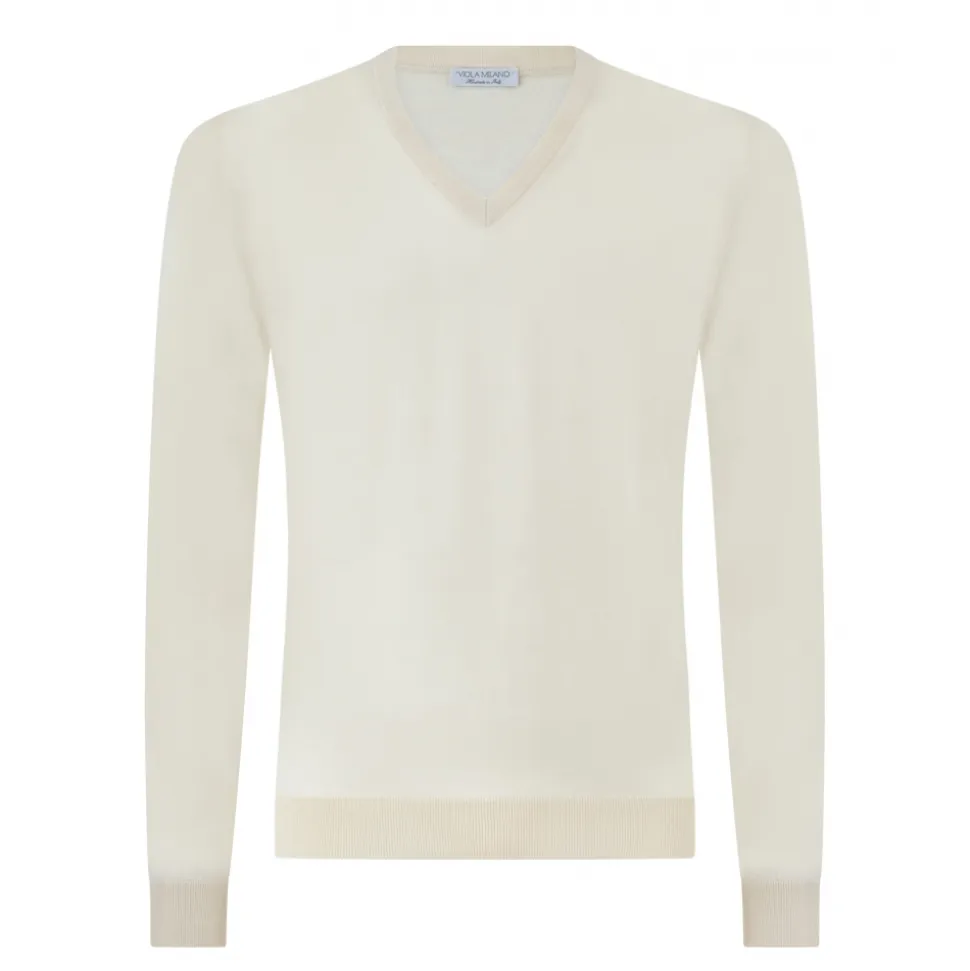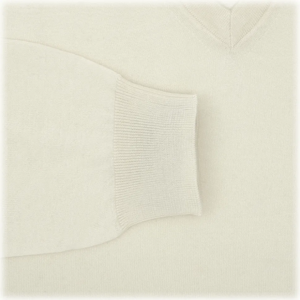 Viola Milano – Cashmere V-Neck Sweater – Cream – Handmade in Italy – Luxury Exclusive Collection