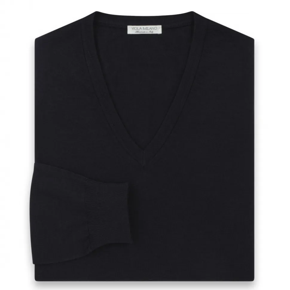 Viola Milano – Cashmere V-Neck Sweater – Navy – Handmade in Italy – Luxury Exclusive Collection