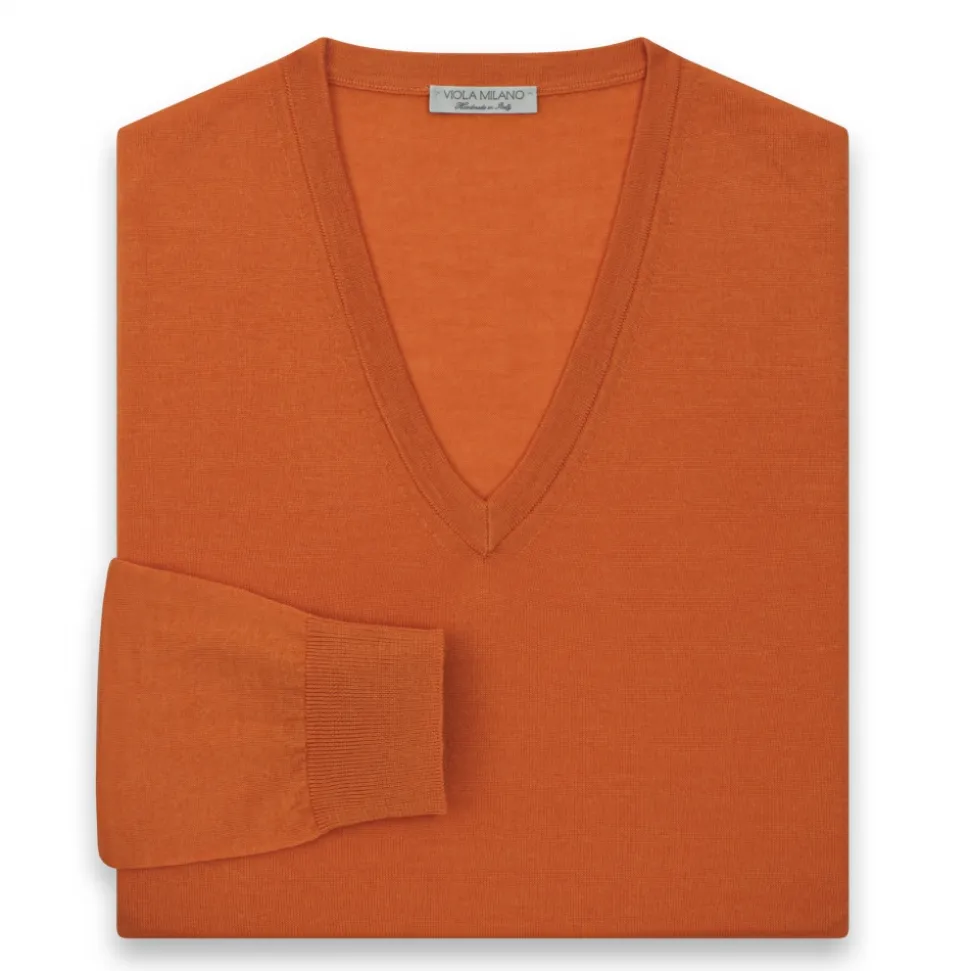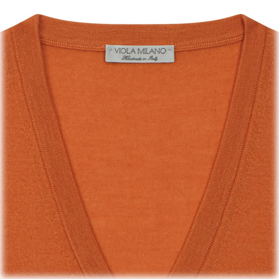 Viola Milano – Cashmere V-Neck Sweater – Orange – Handmade in Italy – Luxury Exclusive Collection
