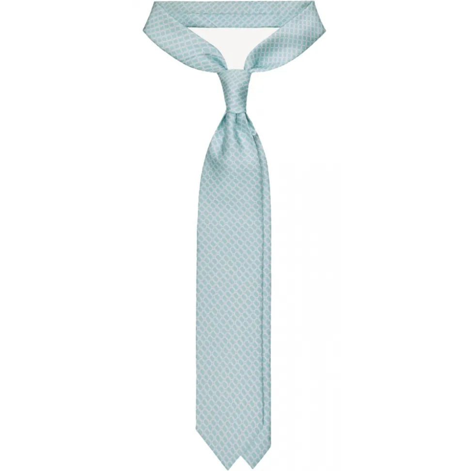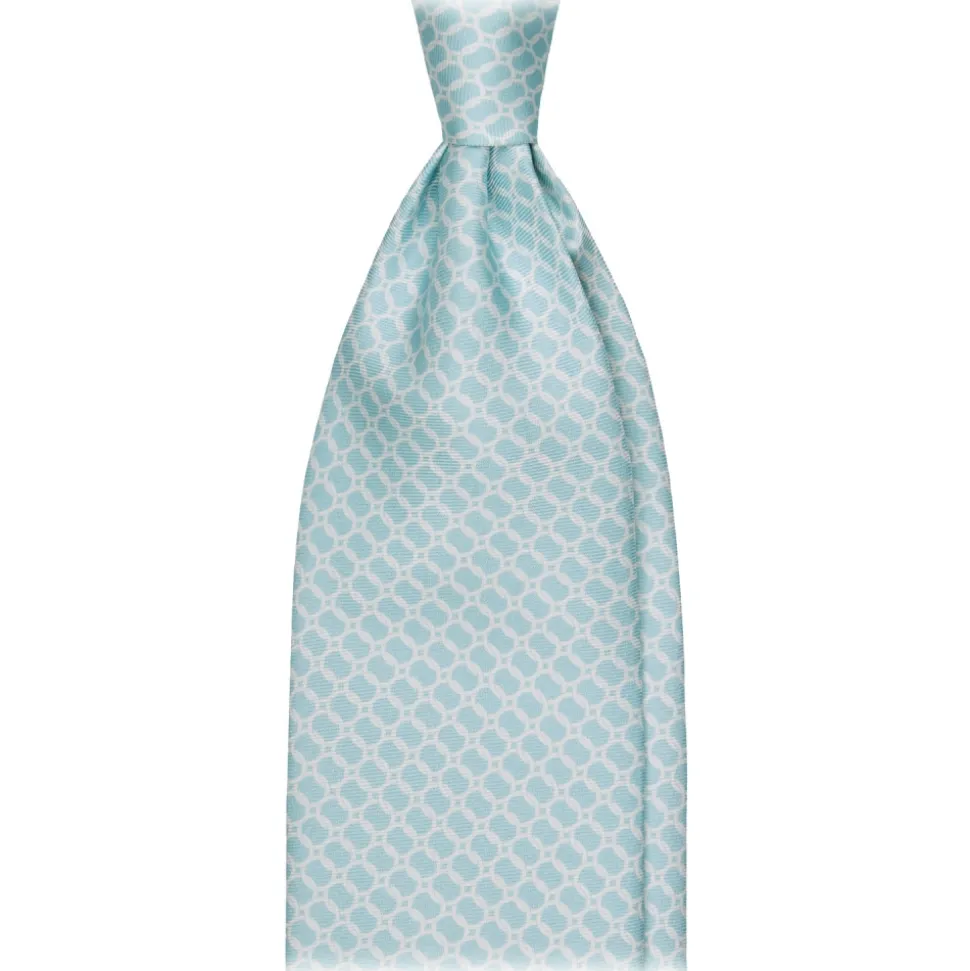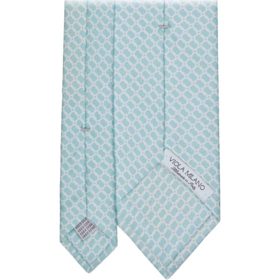 Viola Milano – Chain Circle Handprinted Selftipped Silk Tie – Menthol/White – Handmade in Italy – Luxury Exclusive Collection