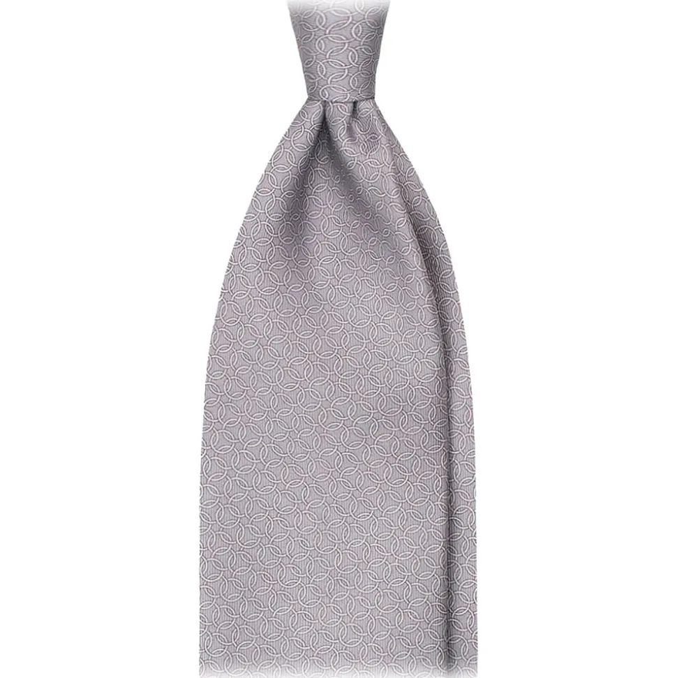 Viola Milano – Chain Circle Selftipped Italian Silk Tie – Grey – Handmade in Italy – Luxury Exclusive Collection