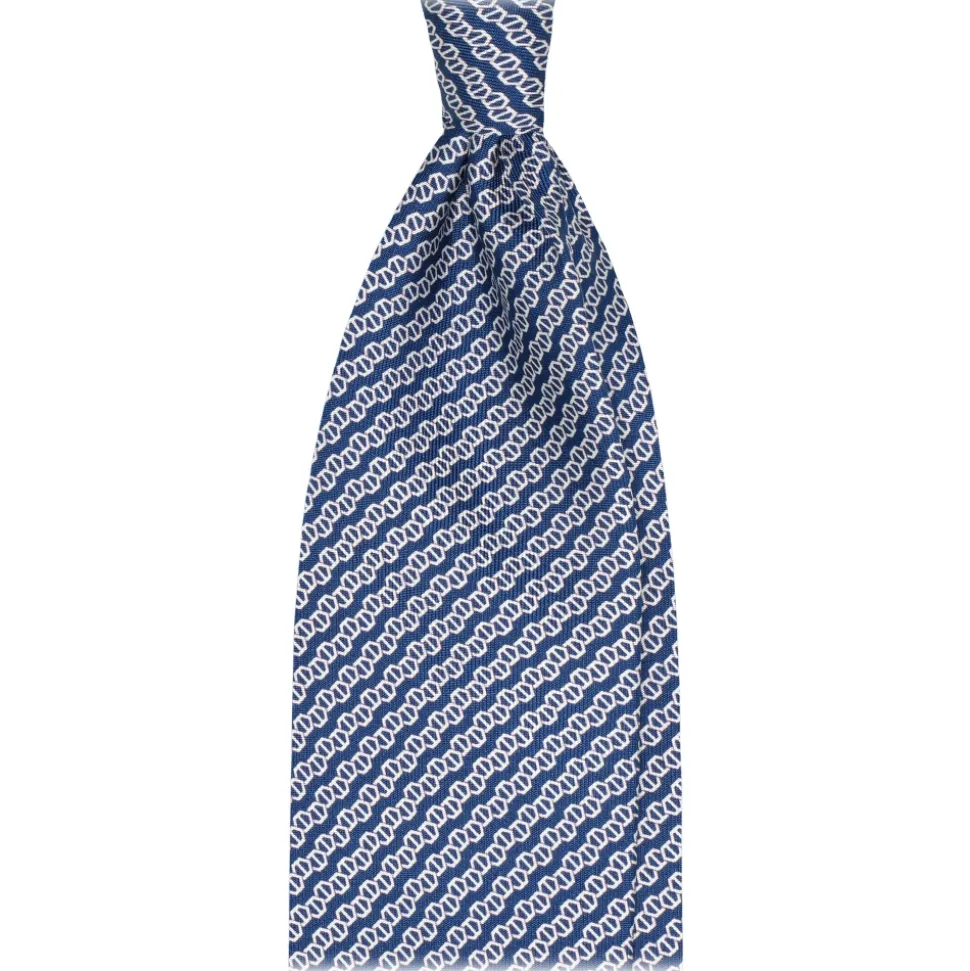 Viola Milano – Chain Maillon Selftipped Italian Silk Tie – Navy / White – Made in Italy – Luxury Exclusive Collection