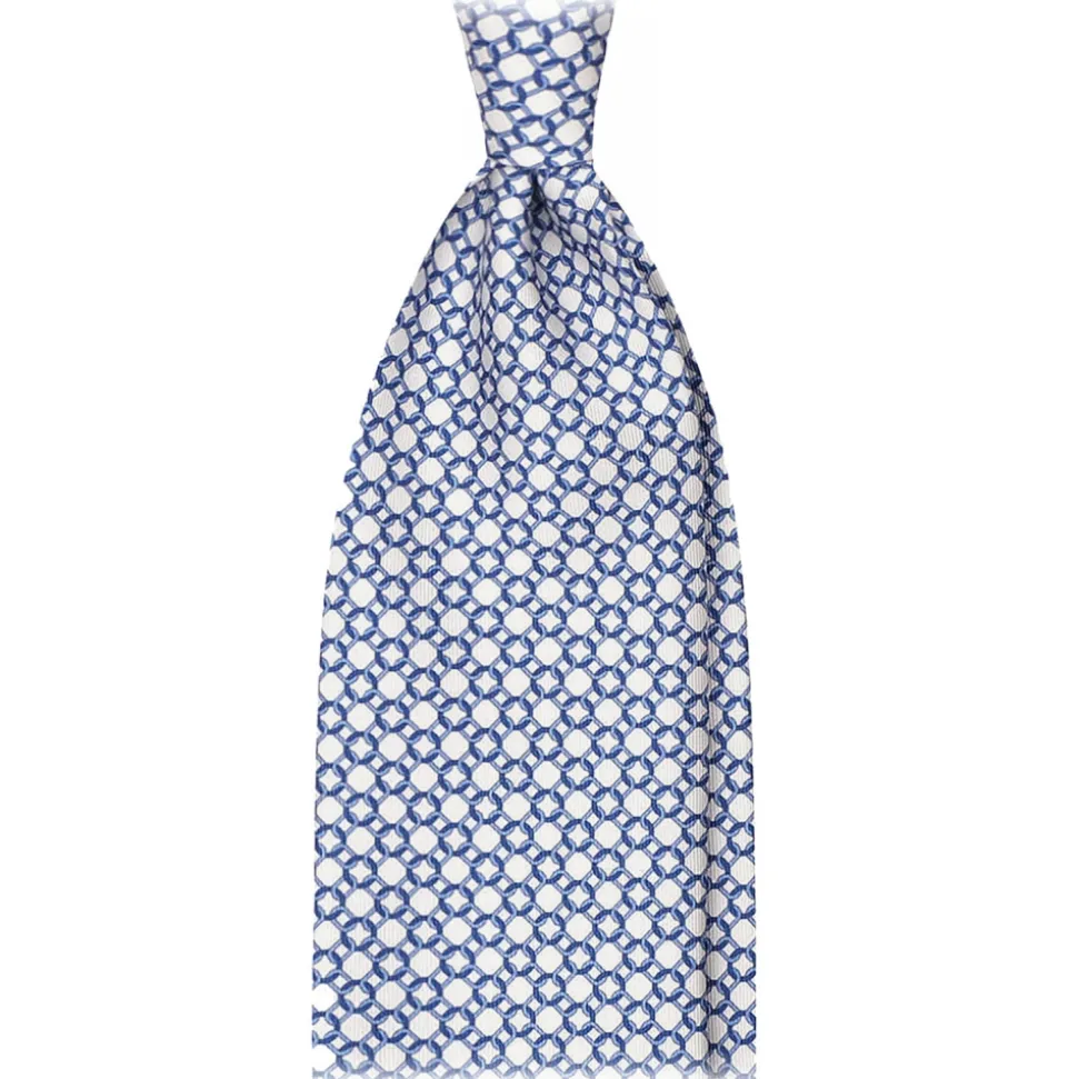 Viola Milano – Chain Pattern Selftipped Italian Silk Tie – Ivory – Handmade in Italy – Luxury Exclusive Collection