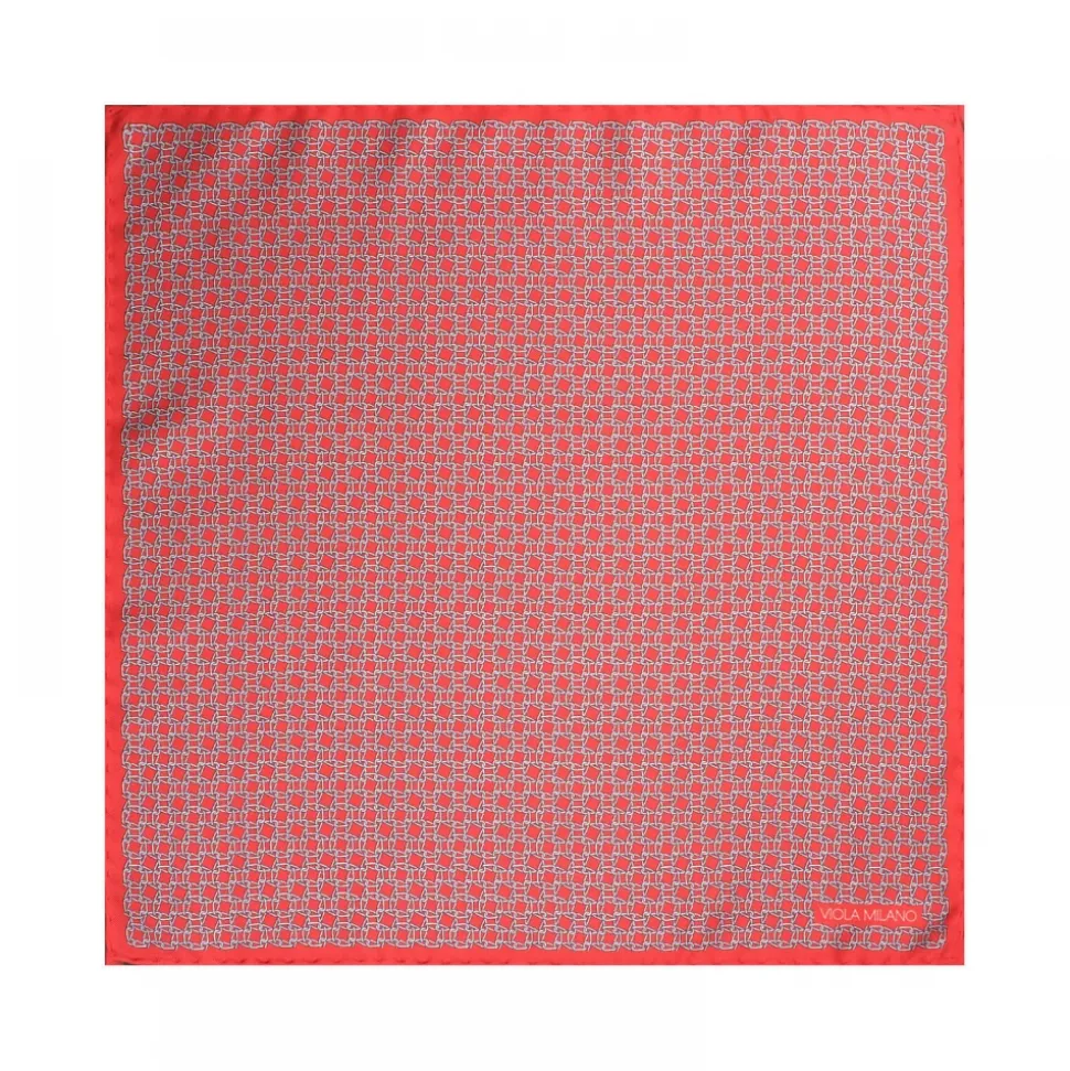 Viola Milano – Chain Pattern Silk Pocket Square – Red – Handmade in Italy – Luxury Exclusive Collection