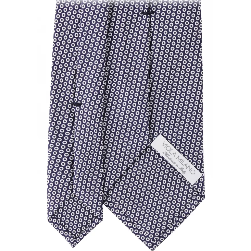 Viola Milano – Classic Circle Selftipped Italian Silk Tie – Navy/White – Handmade in Italy – Luxury Exclusive Collection