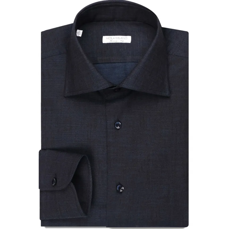 Viola Milano – Classic Denim Cut-Away Collar Dress Shirt – Midnight Denim – Handmade in Italy – Luxury Exclusive Collection