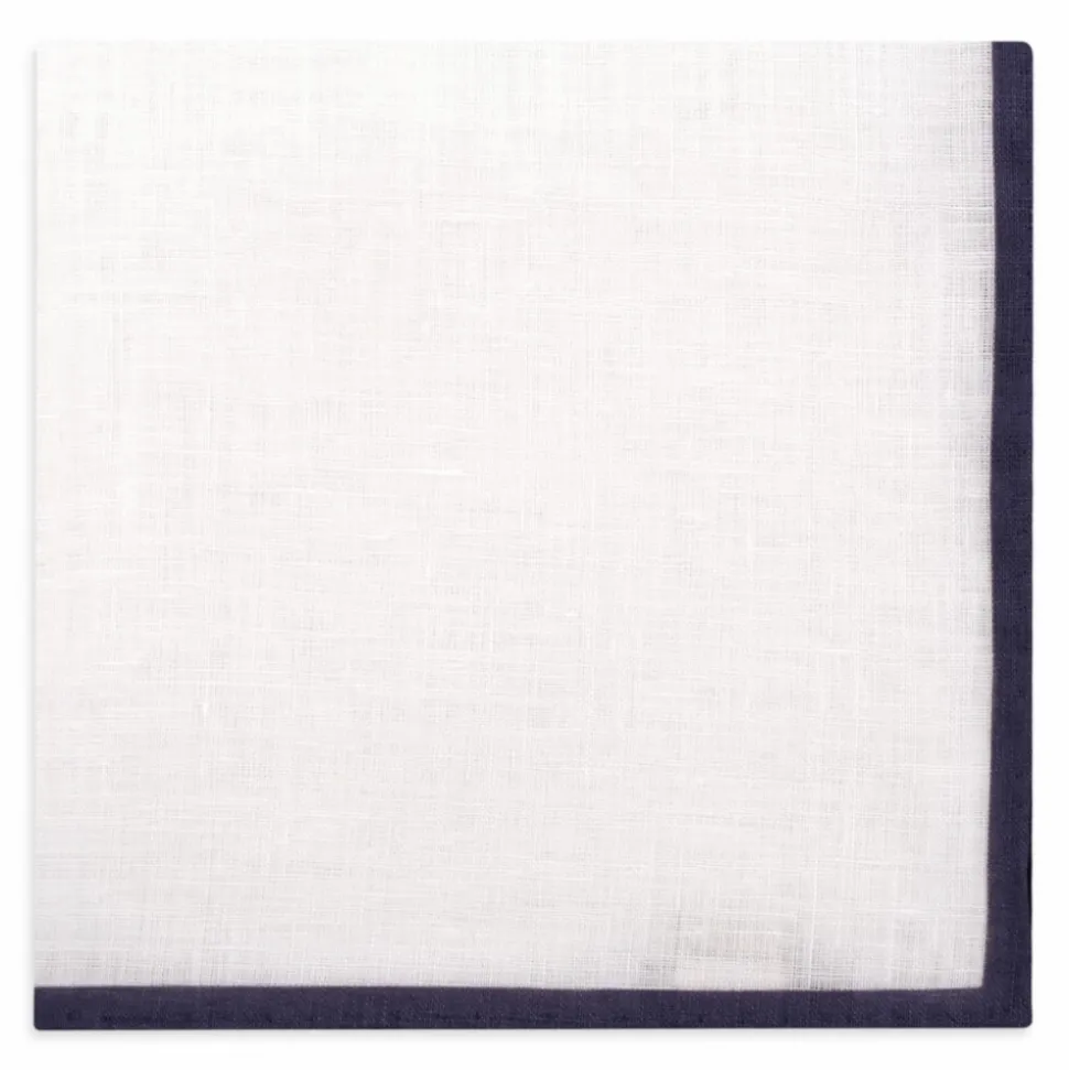 Viola Milano – Classic Linen Pocket Square – Navy – Handmade in Italy – Luxury Exclusive Collection