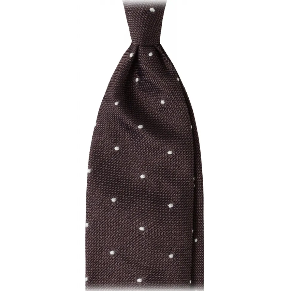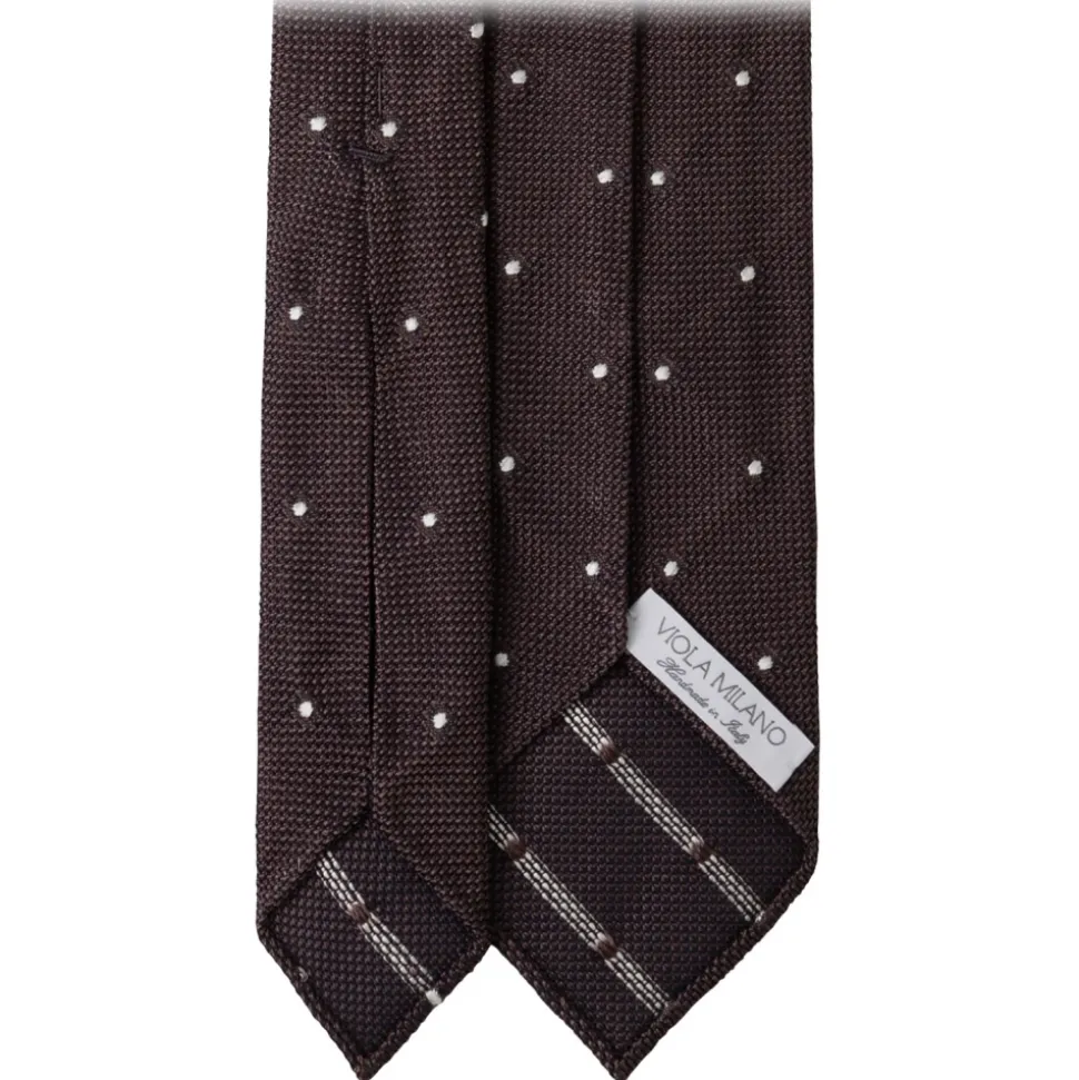 Viola Milano – Classic Polka Dot 3-Fold Grenadine Tie – Brown/White – Handmade in Italy – Luxury Exclusive Collection