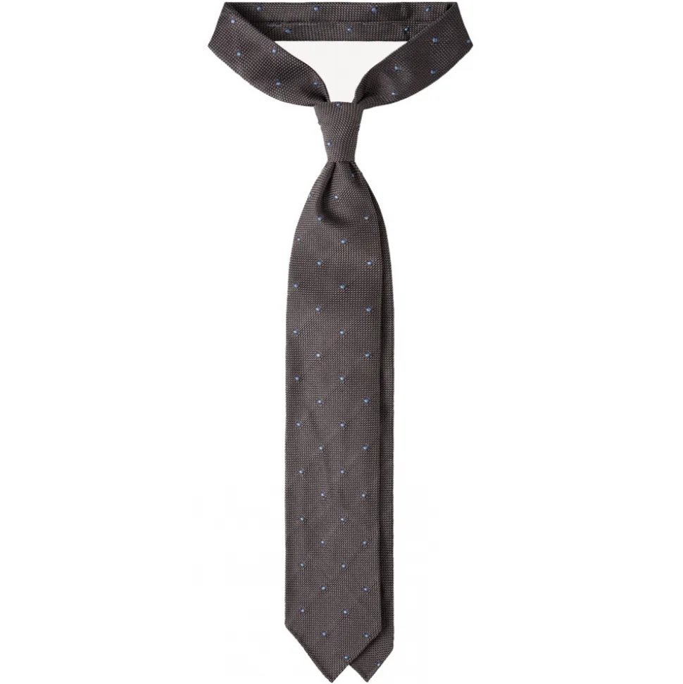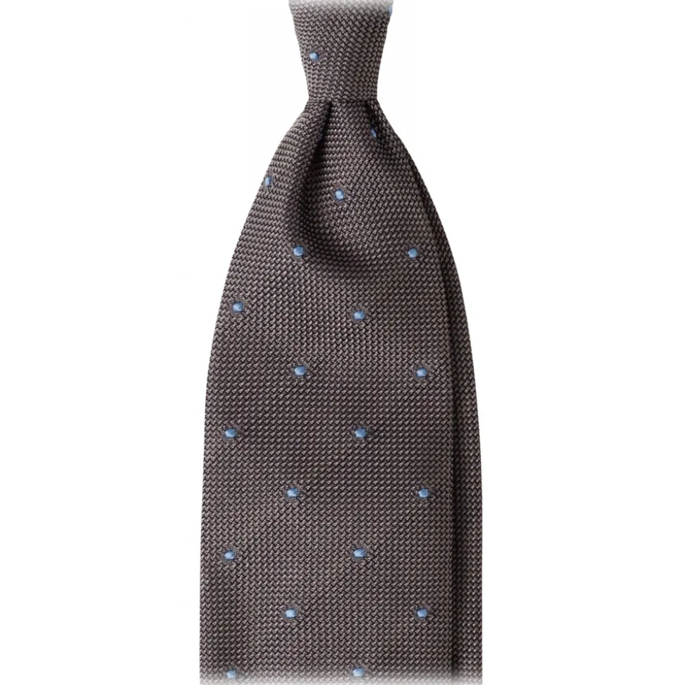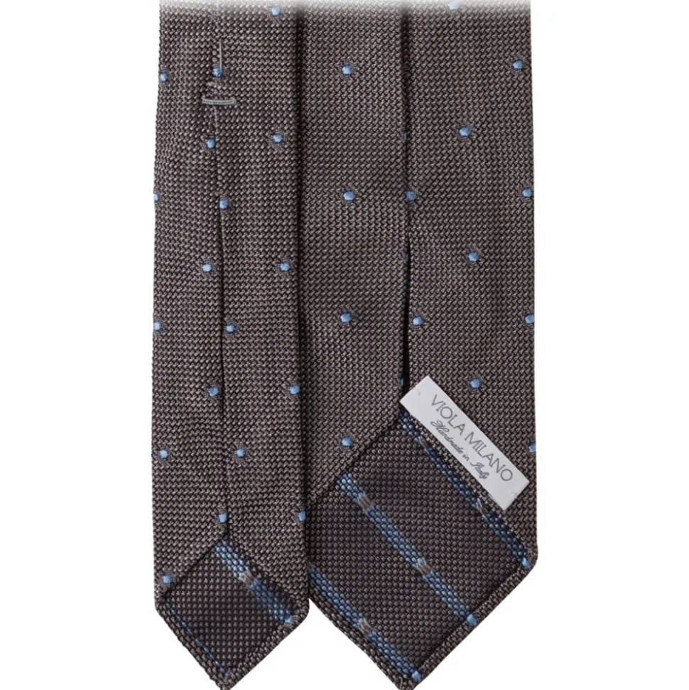 Viola Milano – Classic Polka Dot 3-Fold Grenadine Tie – Grey/Sky – Handmade in Italy – Luxury Exclusive Collection