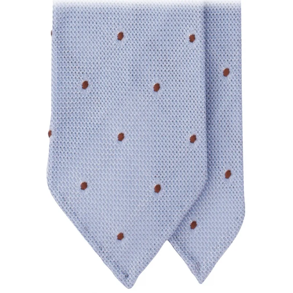 Viola Milano – Classic Polka Dot 3-Fold Grenadine Tie – Light Blue/Brown – Handmade in Italy – Luxury Exclusive Collection