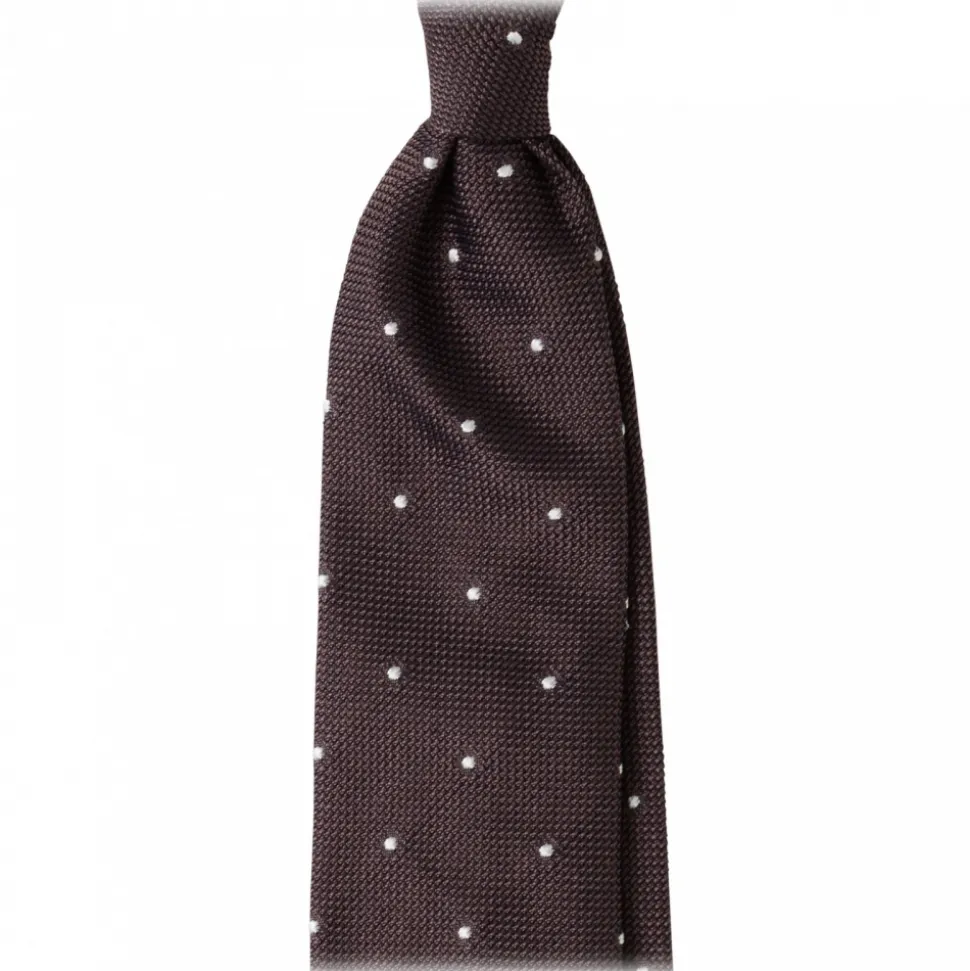 Viola Milano – Artisan Chain Selftipped Italian Silk Tie – Brown / White- Made in Italy – Luxury Exclusive Collection
