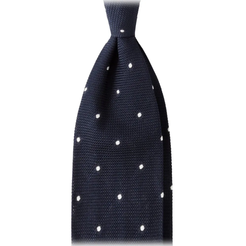 Viola Milano – Classic Polka Dot 3-Fold Grenadine Tie – Navy/White – Handmade in Italy – Luxury Exclusive Collection