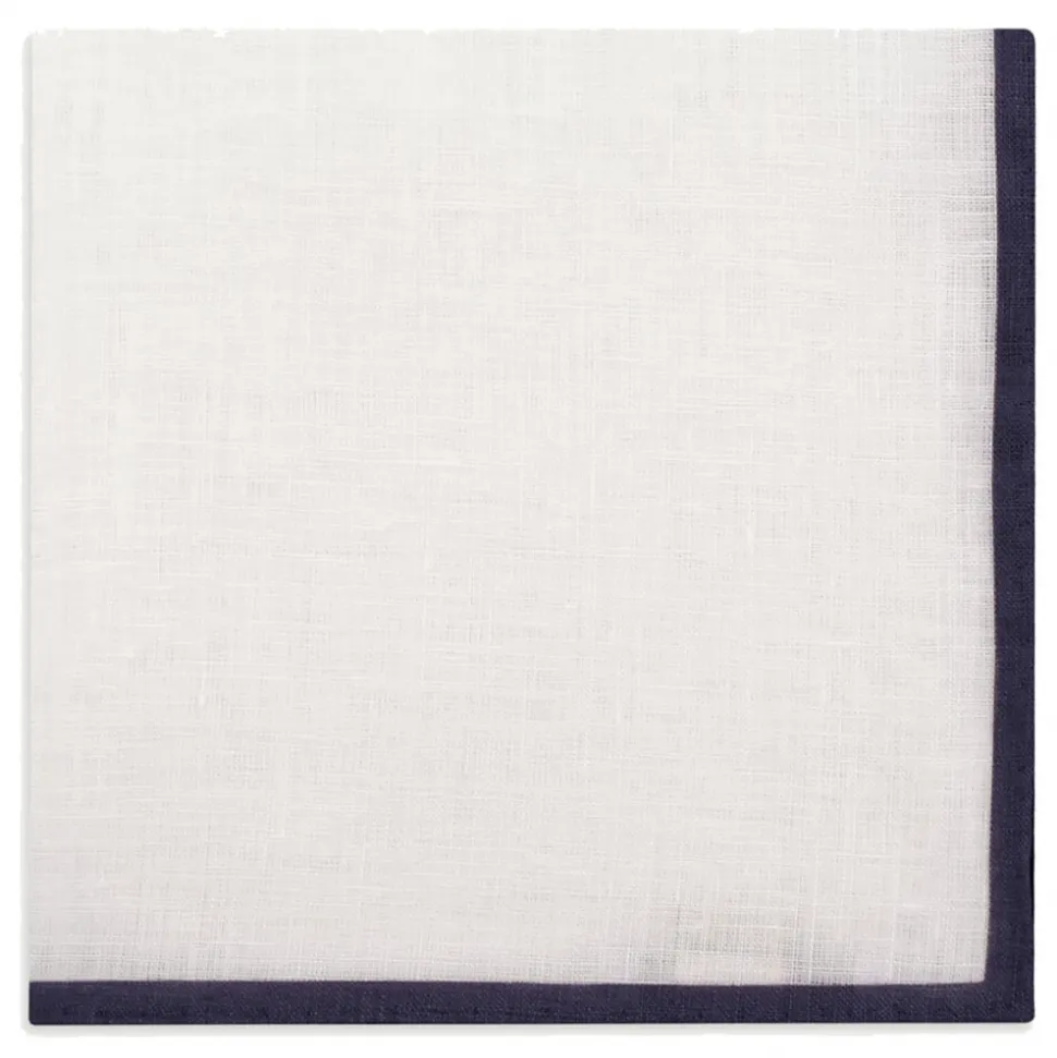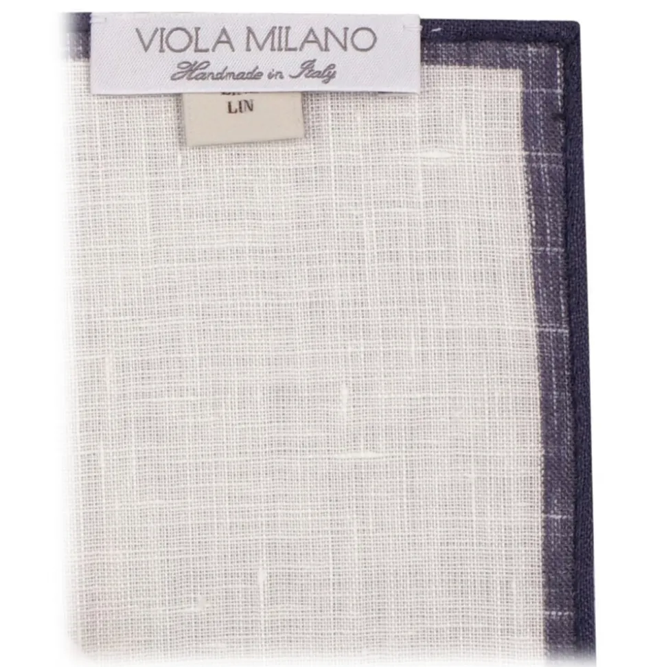Viola Milano – Classic Shoestring Linen Pocket Square – Navy – Handmade in Italy – Luxury Exclusive Collection