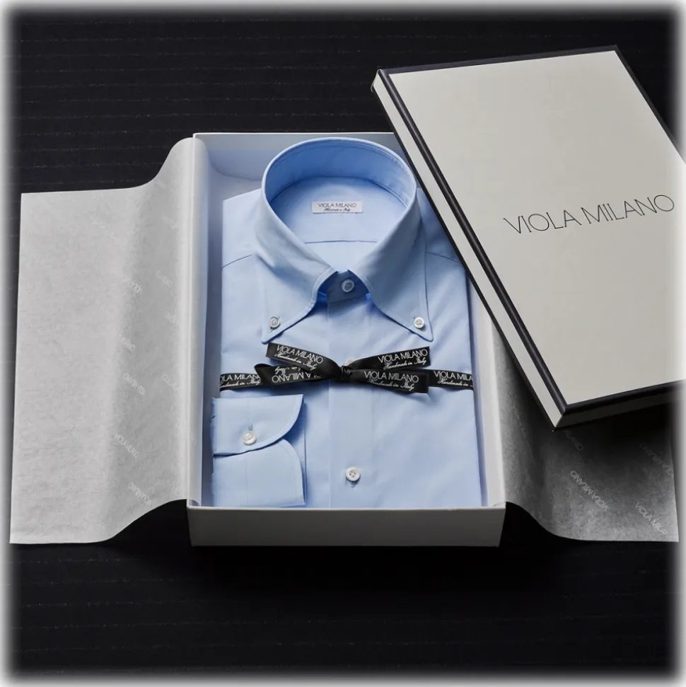 Viola Milano – Classic Solid Color Shirt – Classic Blue – Handmade in Italy – Luxury Exclusive Collection