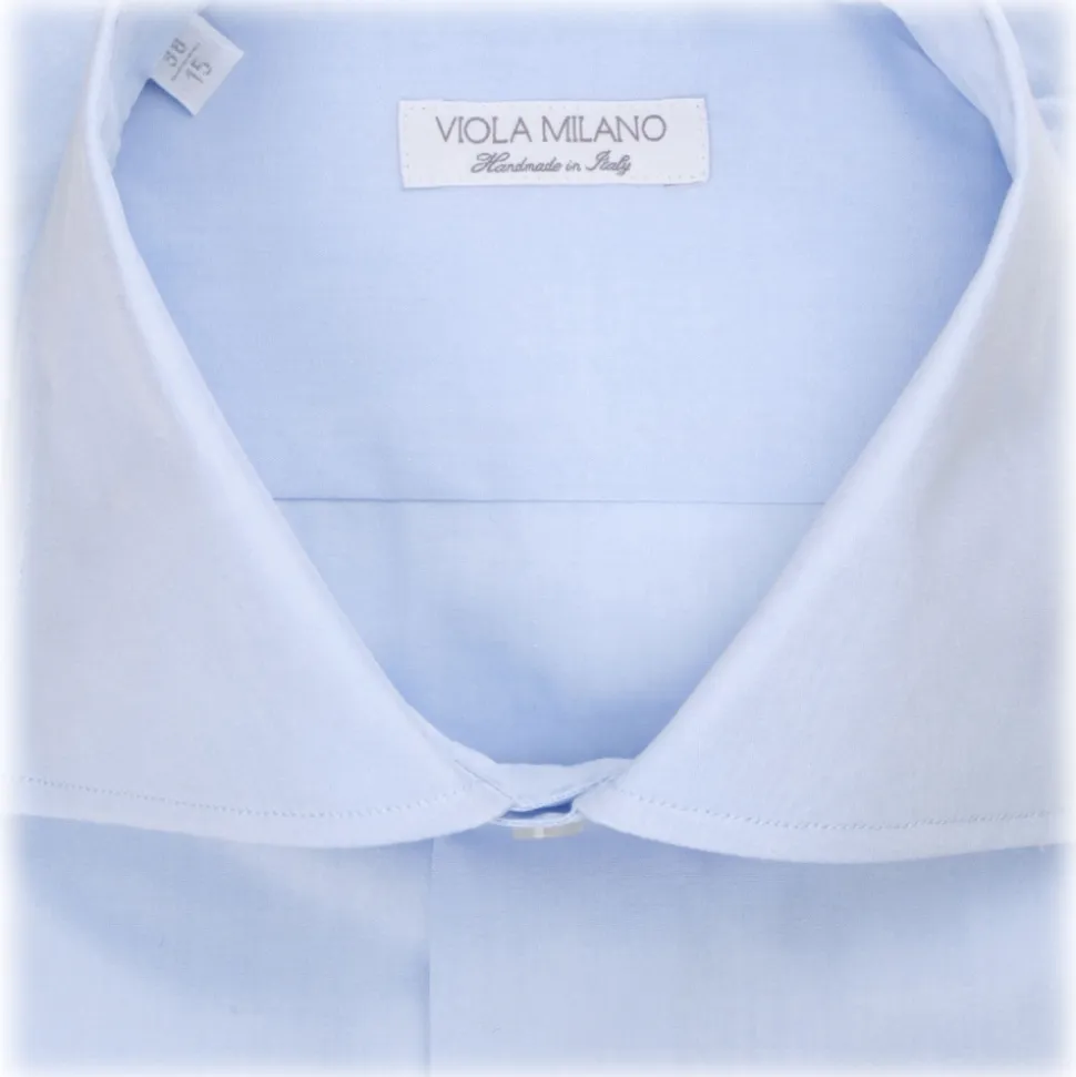 Viola Milano – Classic Solid Cut-Away Collar Dress Shirt – Classic Blue – Handmade in Italy – Luxury Exclusive Collection