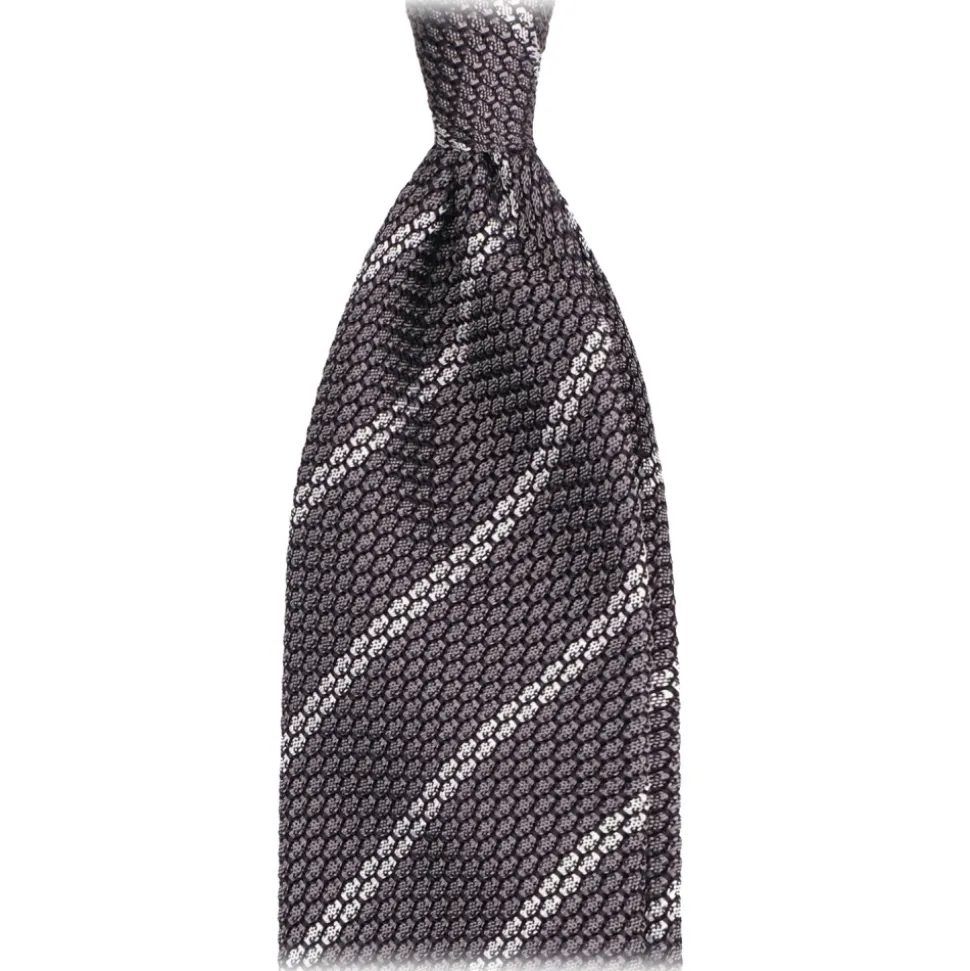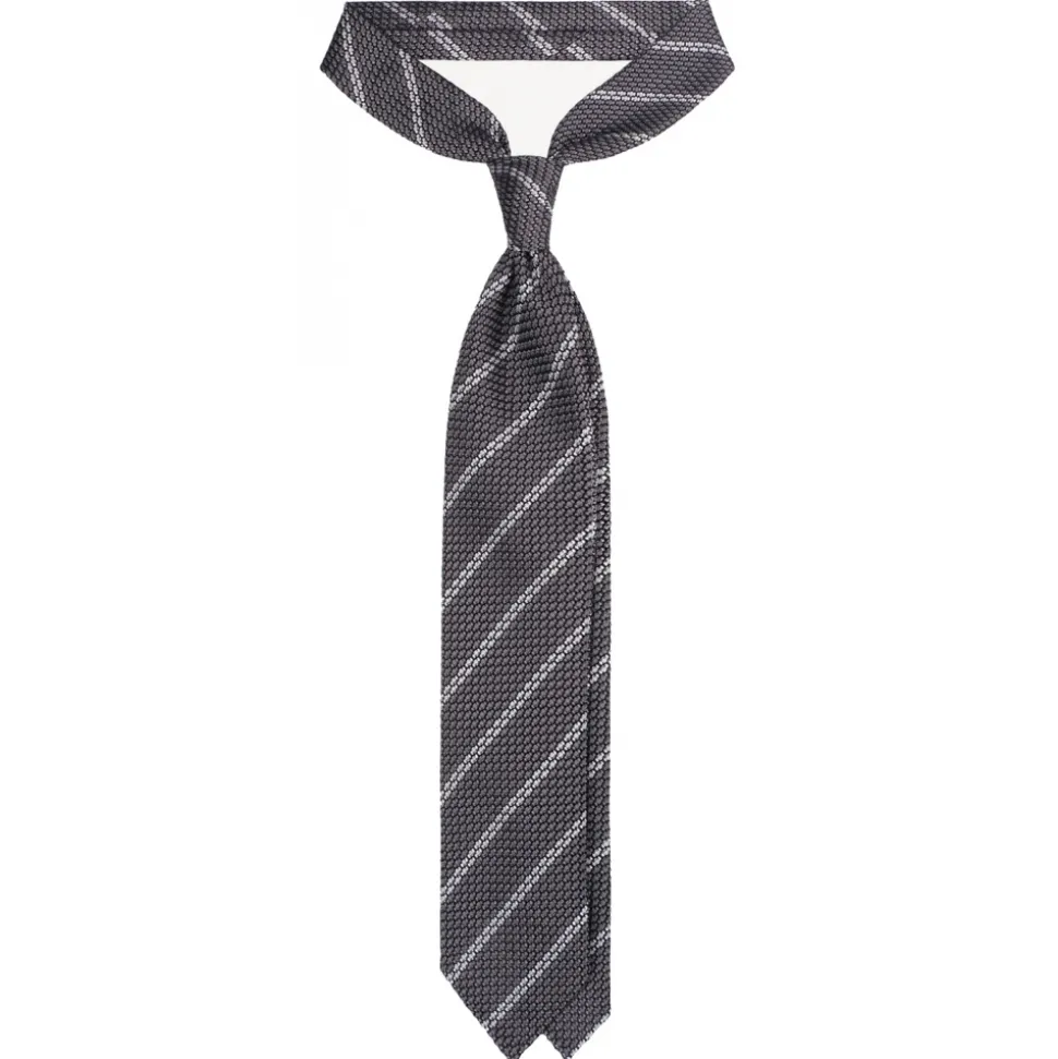 Viola Milano – Classic Stripe 3-Fold Grenadine Tie – Grey/White – Handmade in Italy – Luxury Exclusive Collection