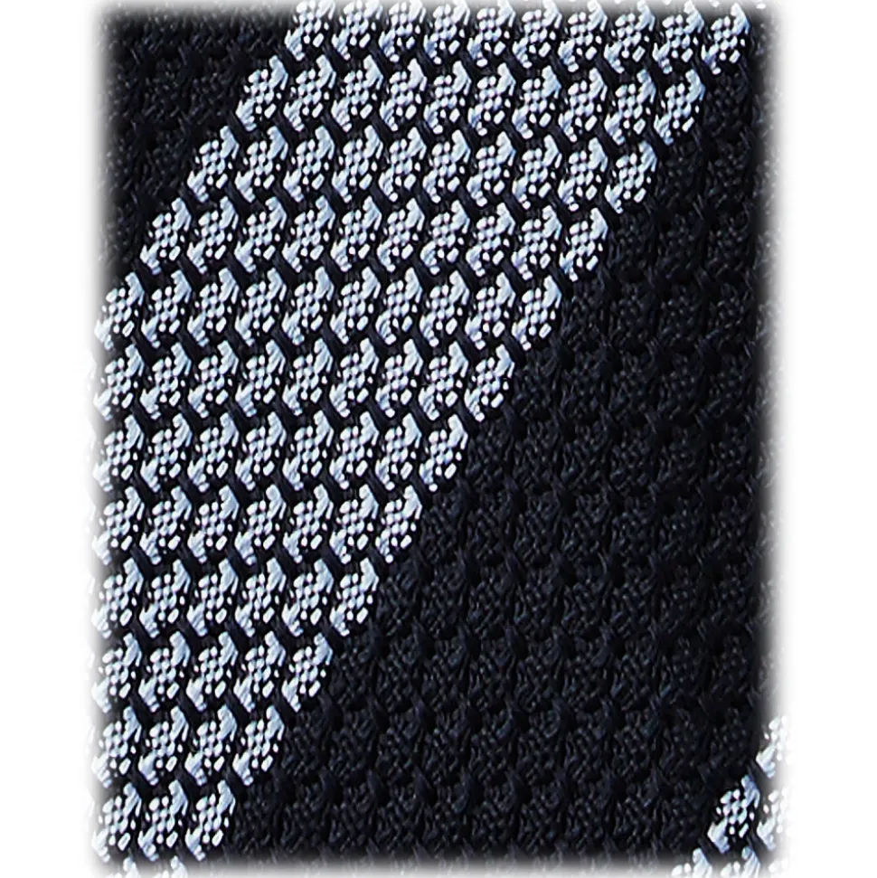 Viola Milano – Classic Stripe 3-Fold Grenadine Tie – Navy/Sea – Handmade in Italy – Luxury Exclusive Collection