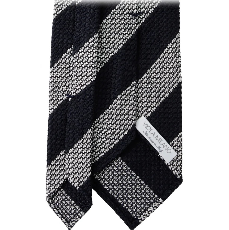 Viola Milano – Classic Stripe 3-Fold Grenadine Tie – Navy/White – Handmade in Italy – Luxury Exclusive Collection