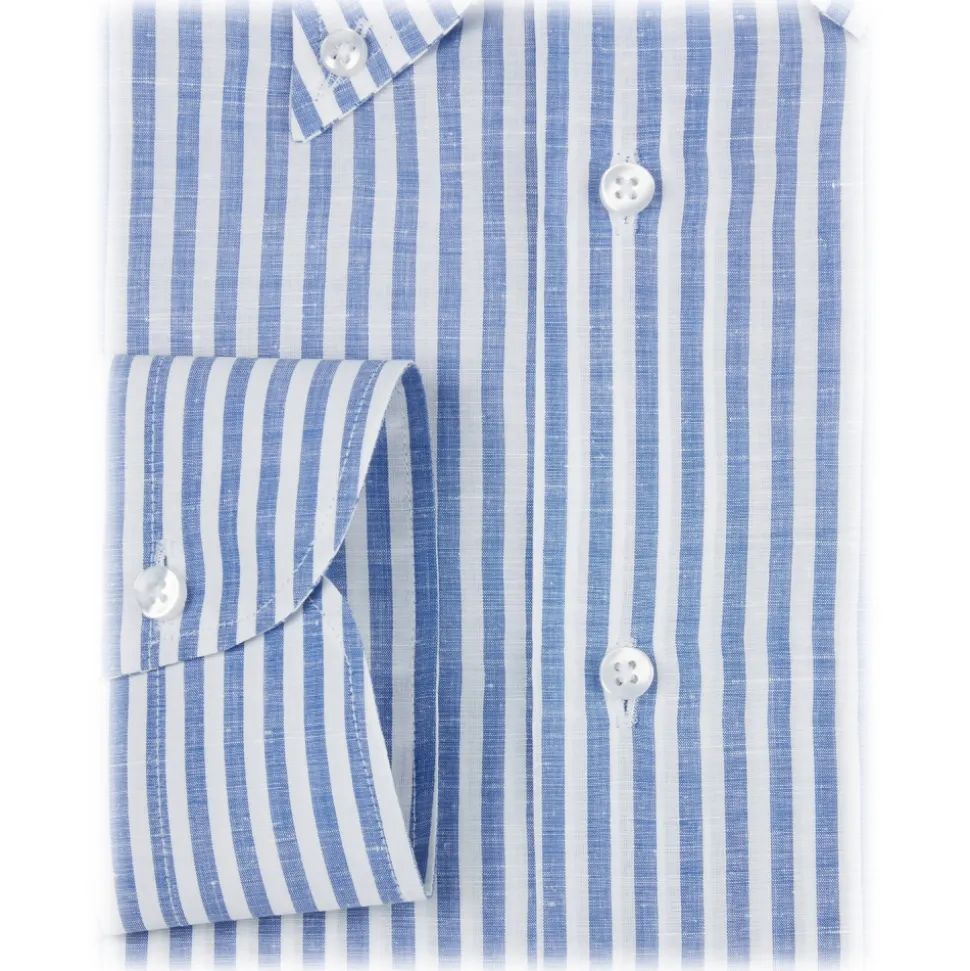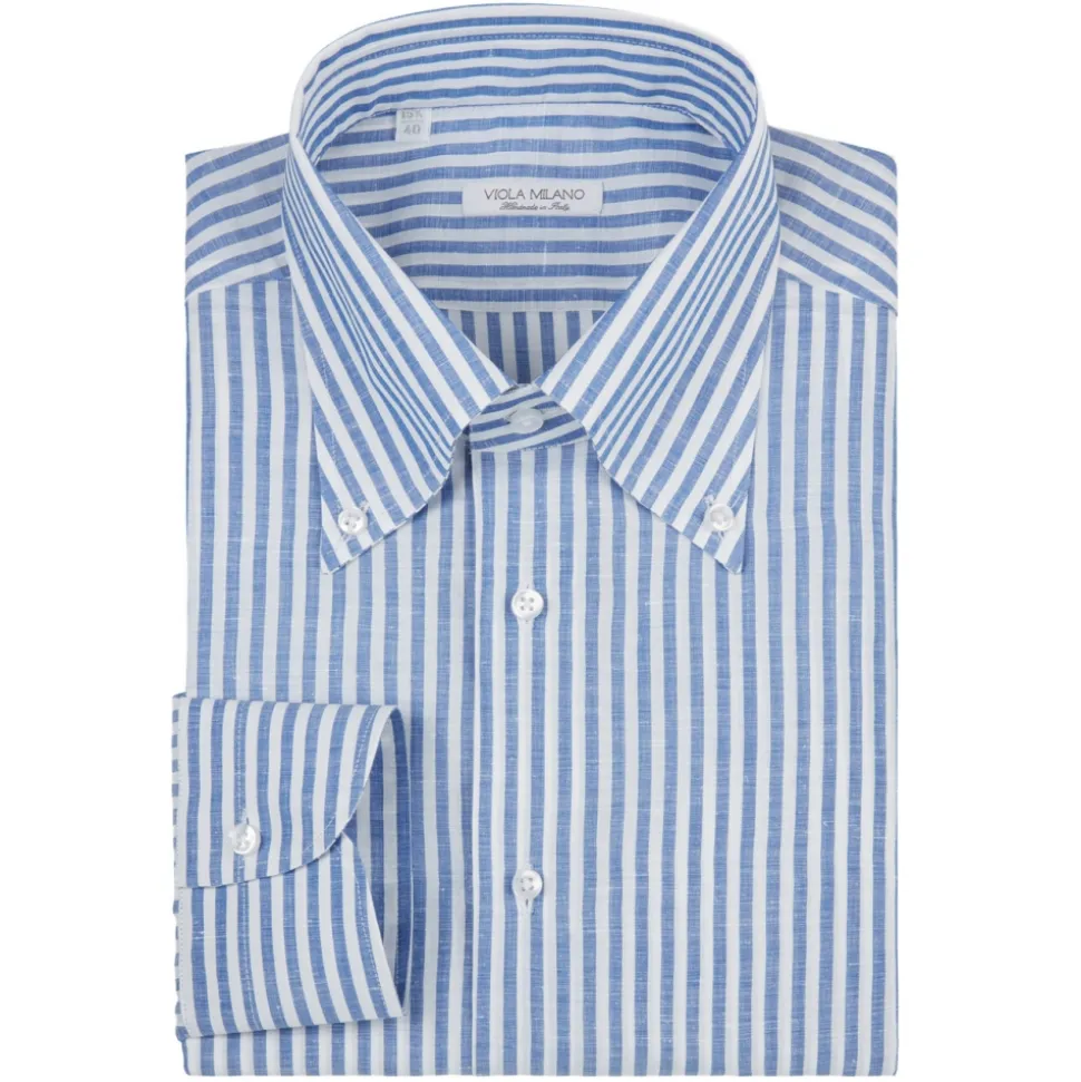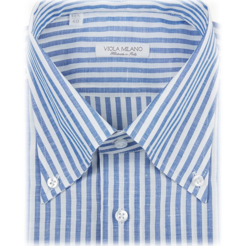 Viola Milano – Classic Stripe Carlo Riva 100% Linen Button-Down Shirt – Blue Stripe – Handmade in Italy – Luxury Exclusive Collection