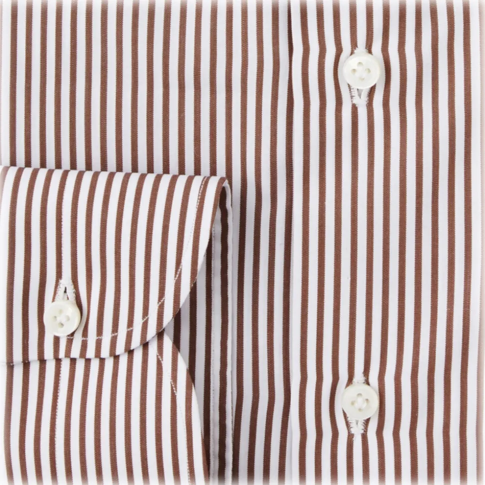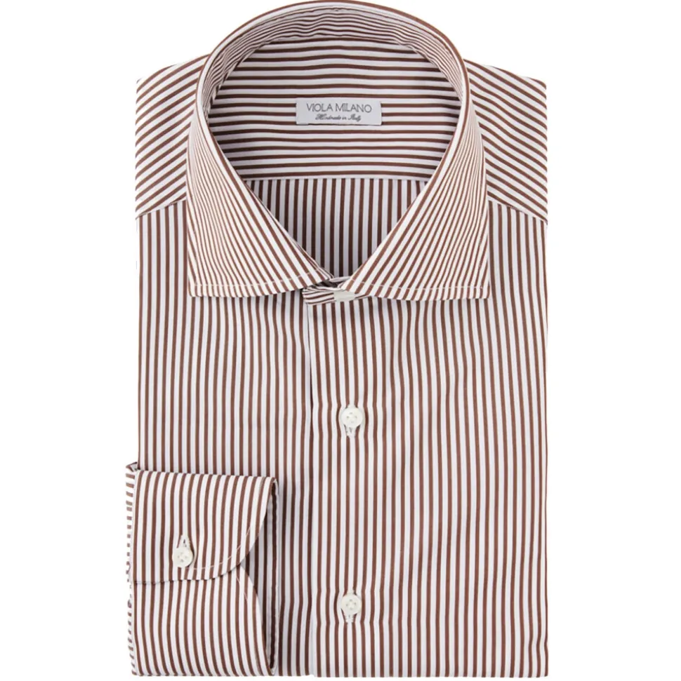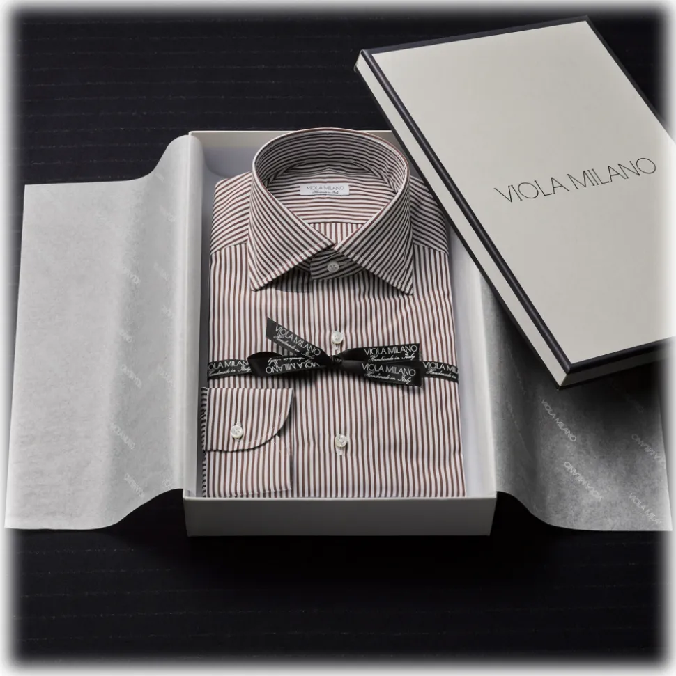 Viola Milano – Classic Stripe Cut-Away Collar Dress Shirt – Brown/White – Handmade in Italy – Luxury Exclusive Collection