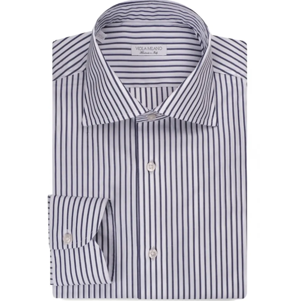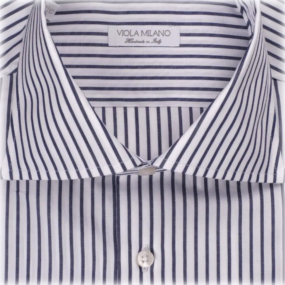 Viola Milano – Classic Stripe Cut-Away Collar Dress Shirt – Midnight/White LL – Handmade in Italy – Luxury Exclusive Collection
