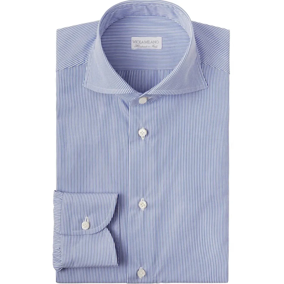 Viola Milano – Classic Stripe Cut-Away Collar Dress Shirt – Navy/White – Handmade in Italy – Luxury Exclusive Collection
