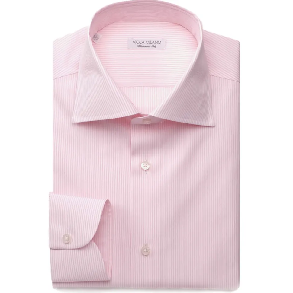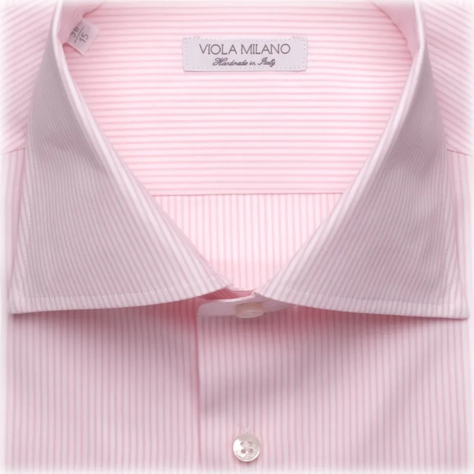 Viola Milano – Classic Stripe Cut-Away Collar Dress Shirt – Pink/White – Handmade in Italy – Luxury Exclusive Collection
