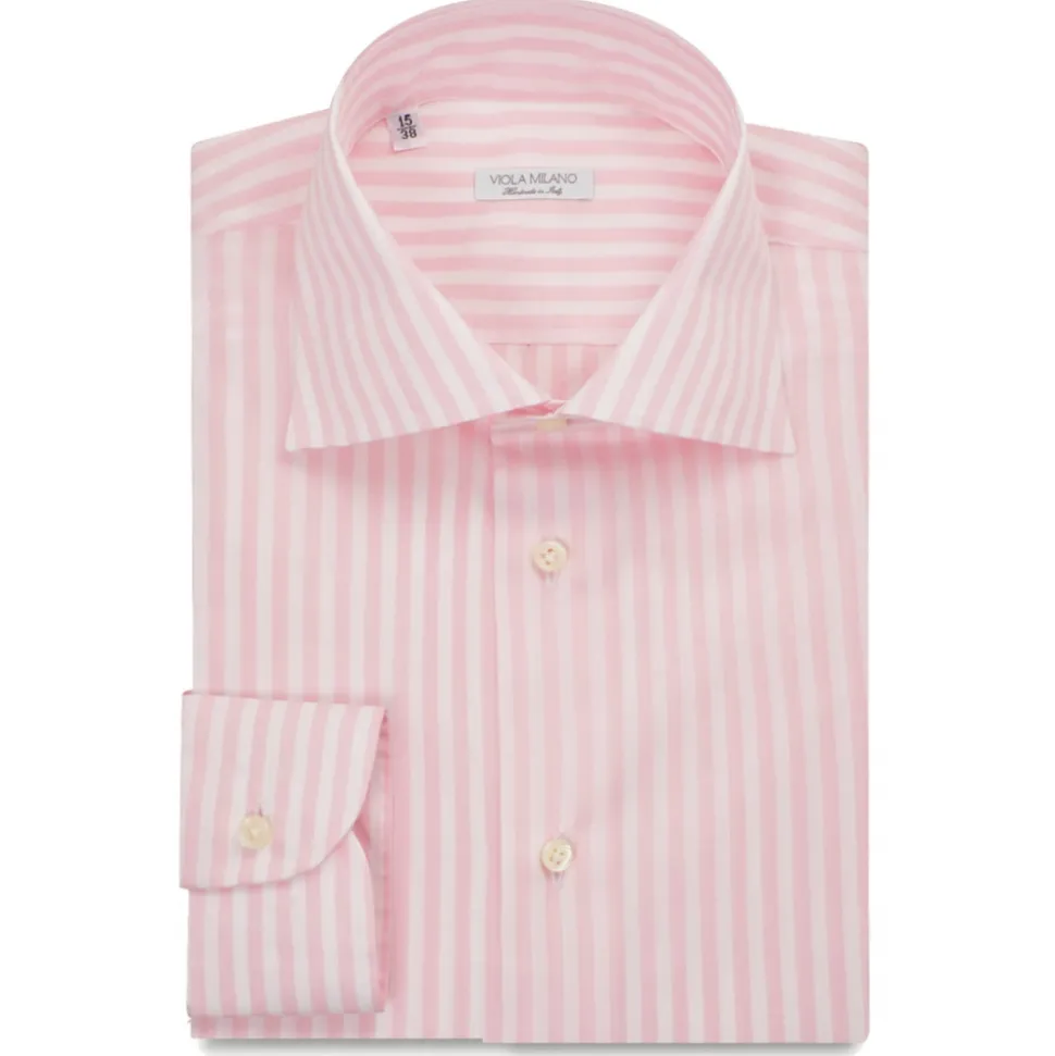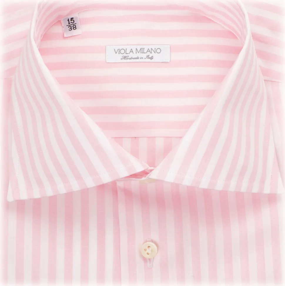 Viola Milano – Classic Stripe Cut-Away Collar Dress Shirt – Pink/White – Handmade in Italy – Luxury Exclusive Collection