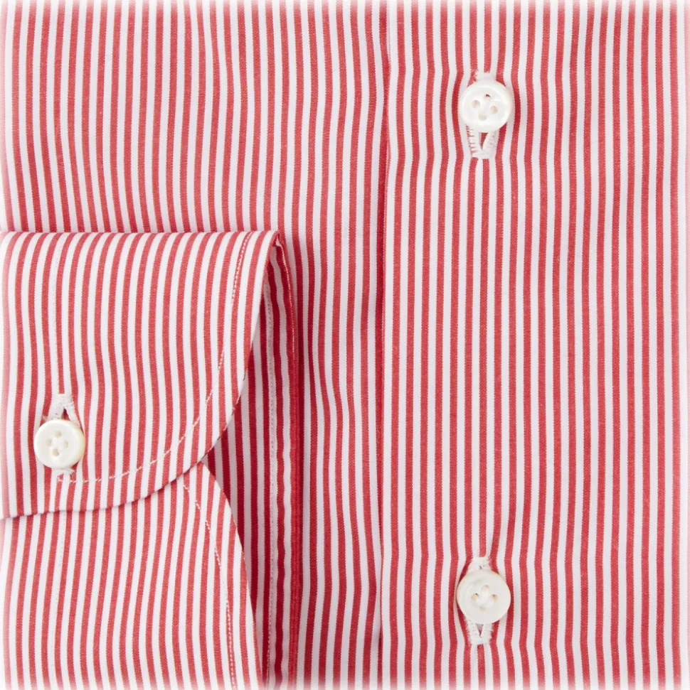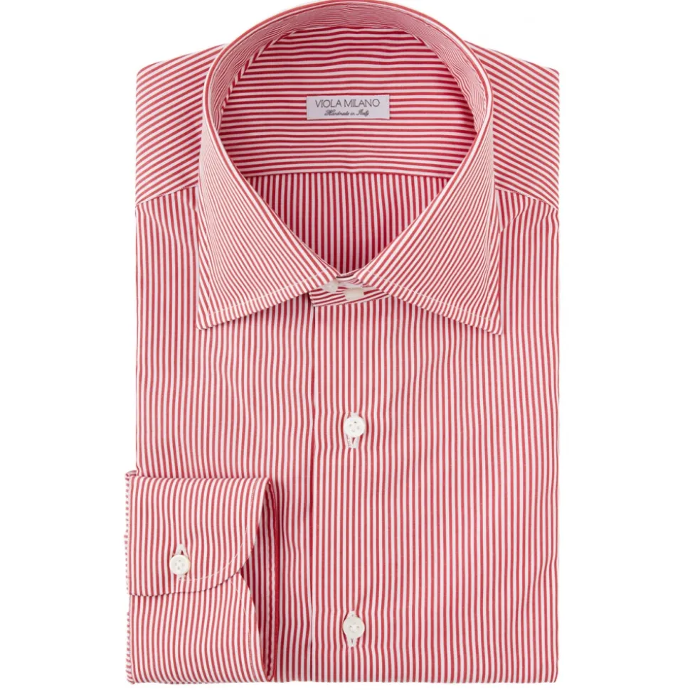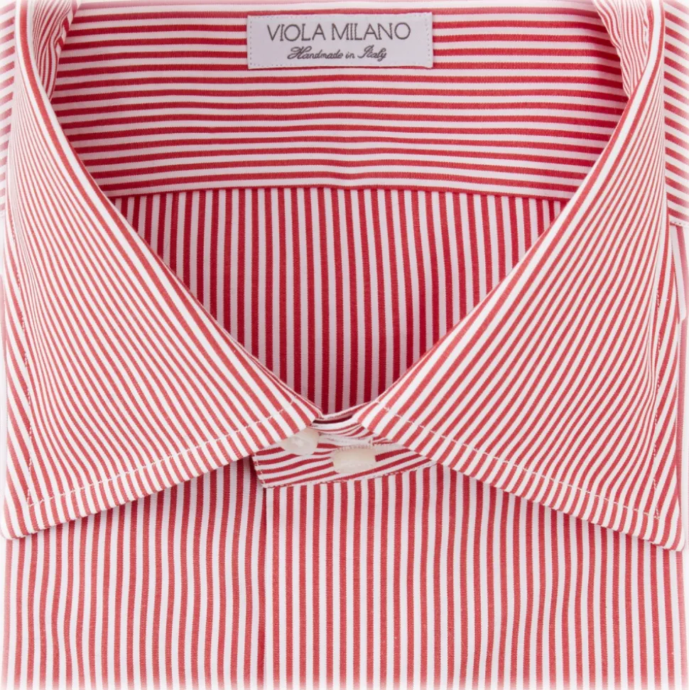 Viola Milano – Classic Stripe Napoli Collar Dress Shirt – Red/White – Handmade in Italy – Luxury Exclusive Collection