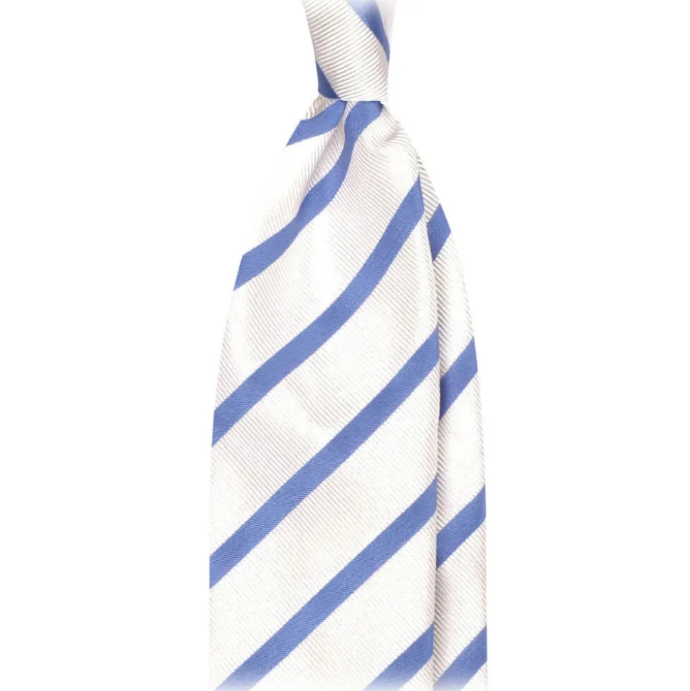 Viola Milano – Classic Stripe Selftipped Woven Silk Jacquard Tie – Sea / Navy – Made in Italy – Luxury Exclusive Collection