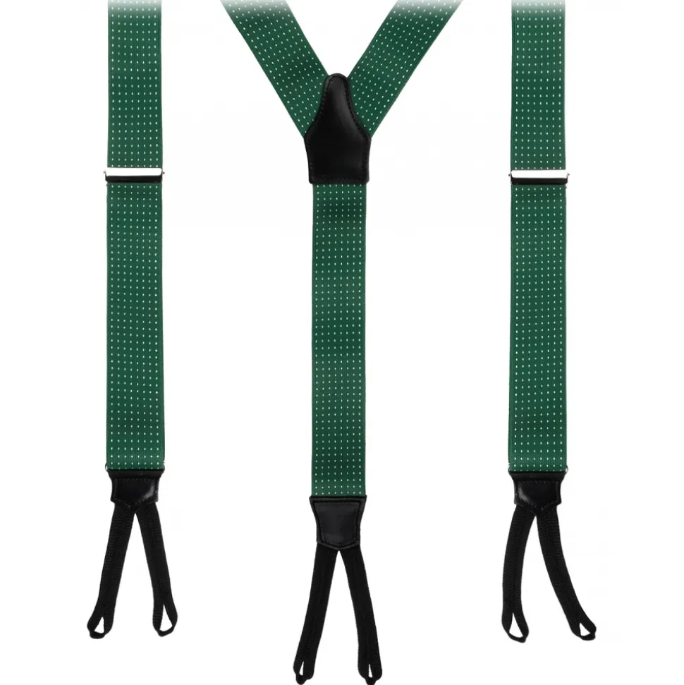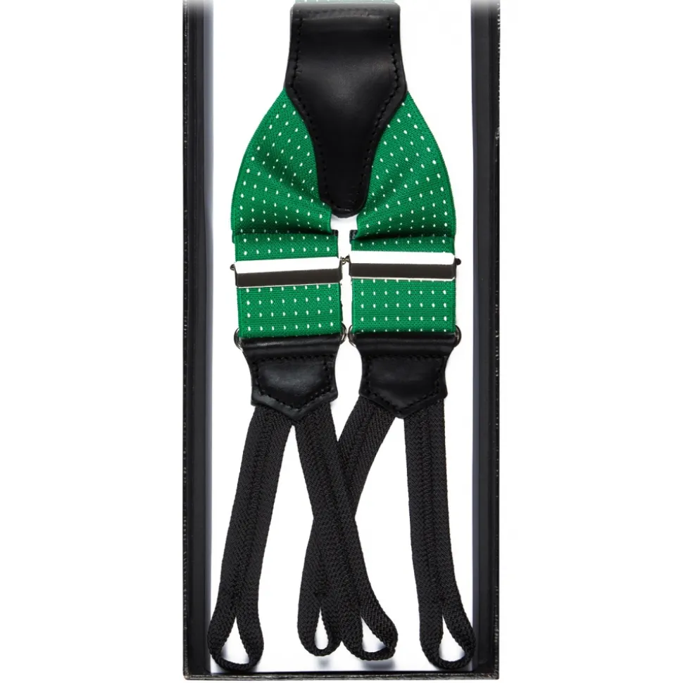 Viola Milano – Classic Width Braces L Braid Ends – Polka Dot Green – Handmade in Italy – Luxury Exclusive Collection