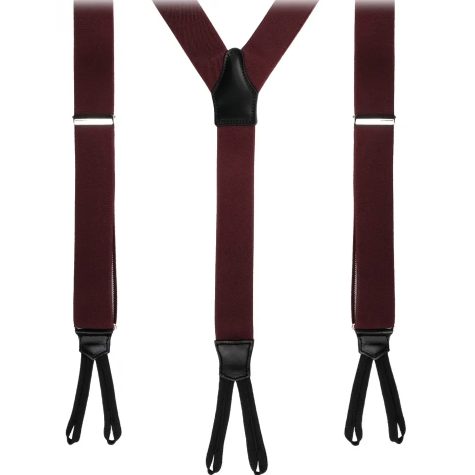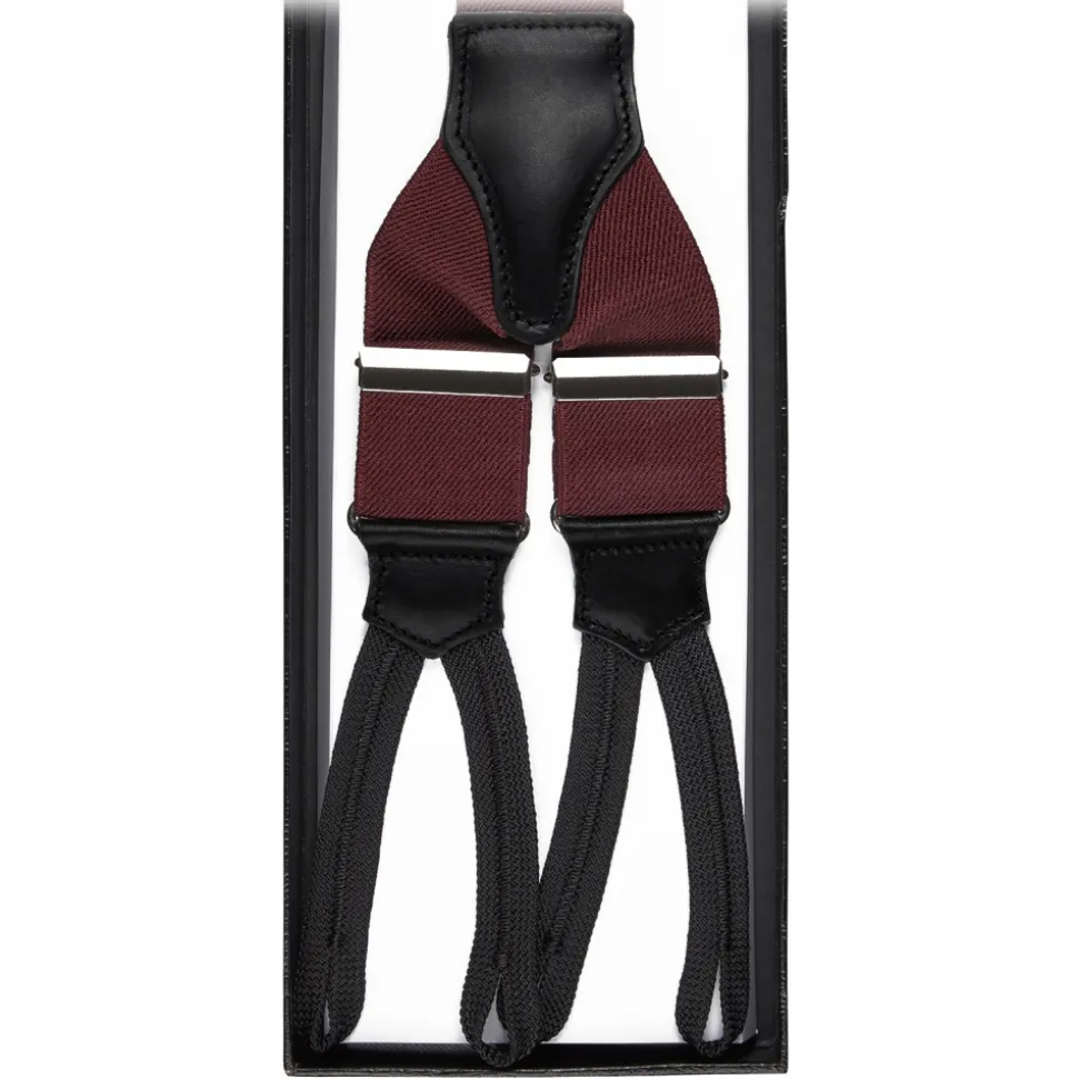 Viola Milano – Classic Width Braces L Braid Ends – Solid Burgundy – Handmade in Italy – Luxury Exclusive Collection
