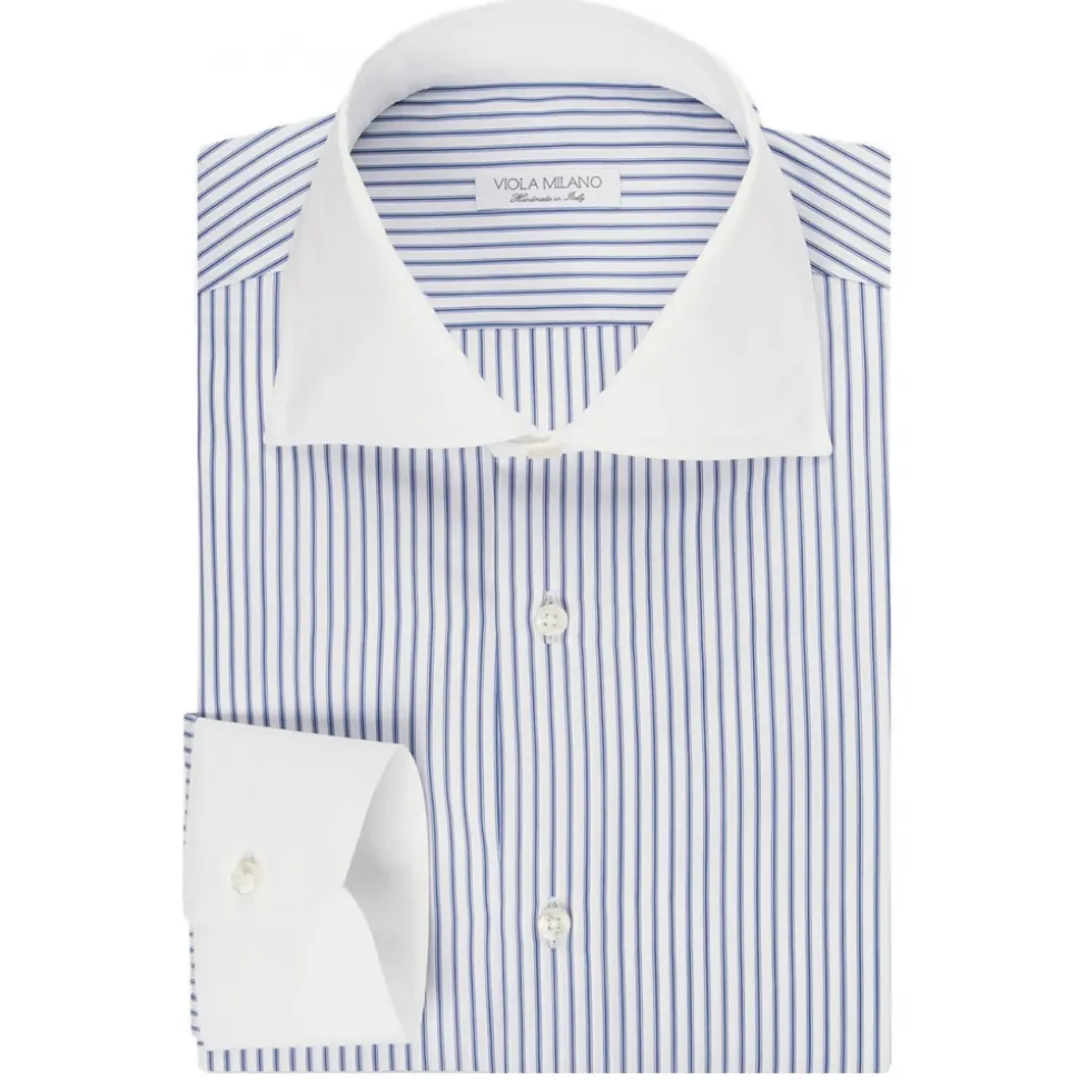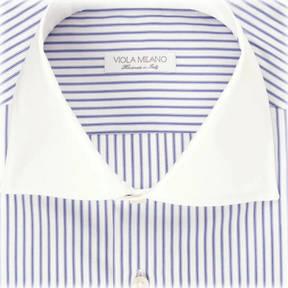Viola Milano – Contrast Collar Cut-Away Collar Shirt – Multi Stripe – Handmade in Italy – Luxury Exclusive Collection