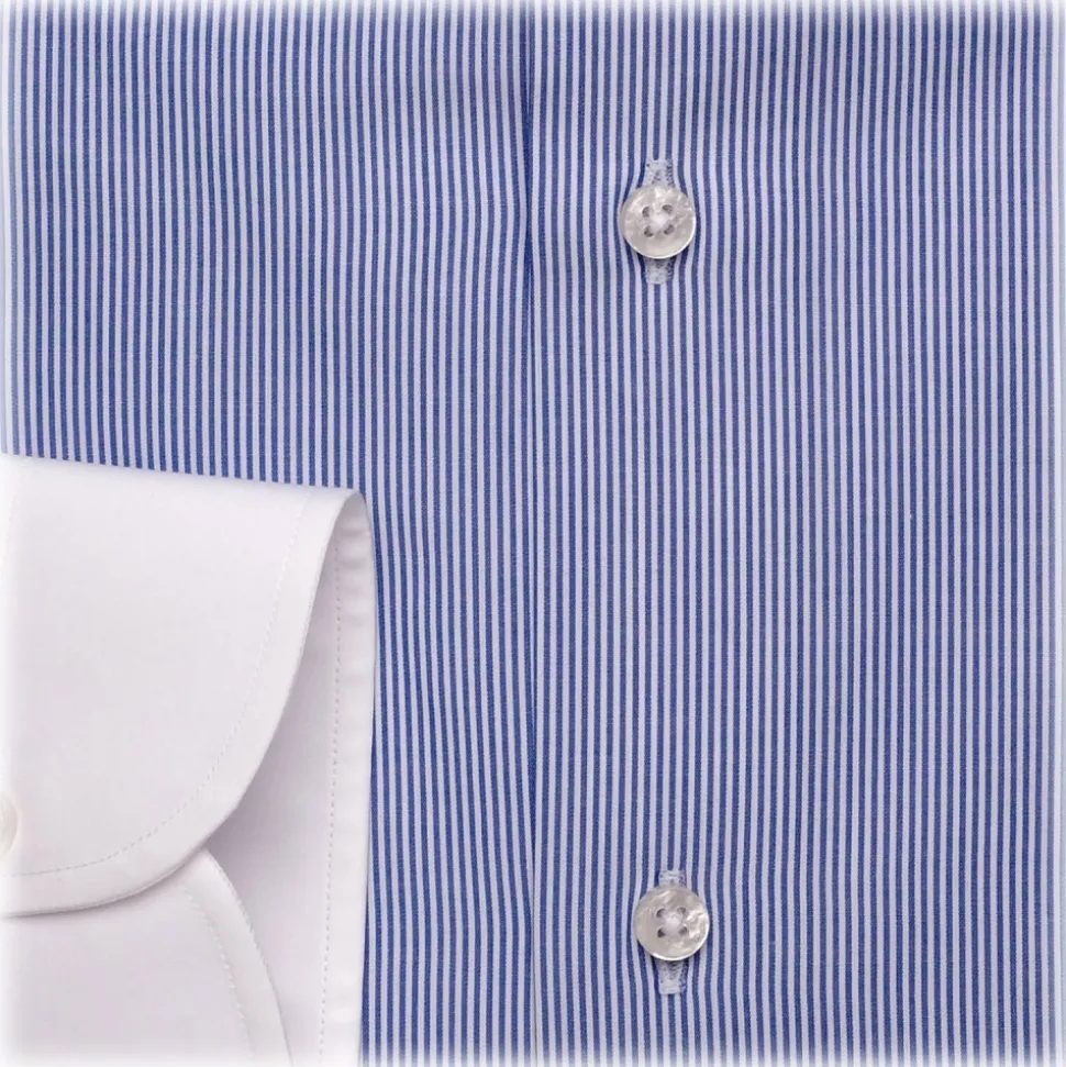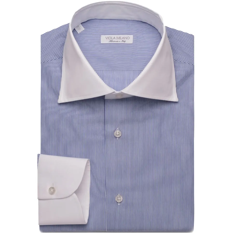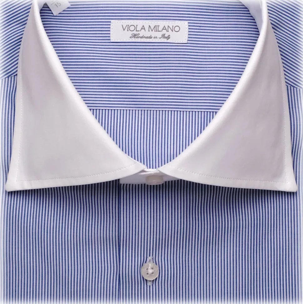 Viola Milano – Contrast Collar Cut-Away Collar Shirt – Navy/White Striped – Handmade in Italy – Luxury Exclusive Collection
