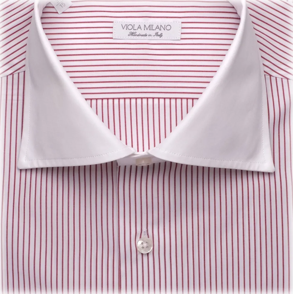 Viola Milano – Contrast Collar Cut-Away Collar Shirt – Red/White Striped – Handmade in Italy – Luxury Exclusive Collection