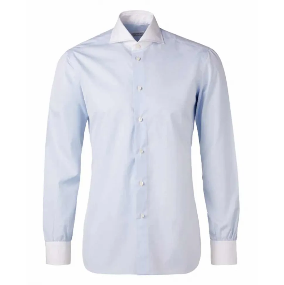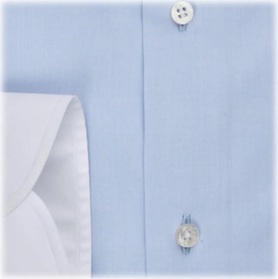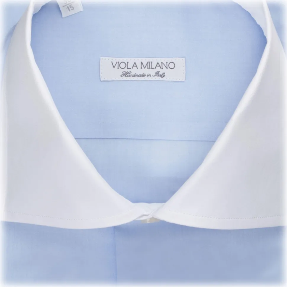 Viola Milano – Contrast Collar Shirt – Blue and White – Handmade in Italy – Luxury Exclusive Collection
