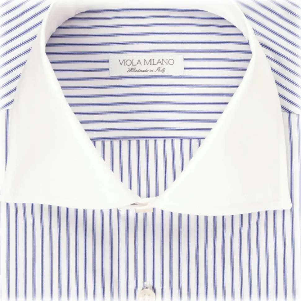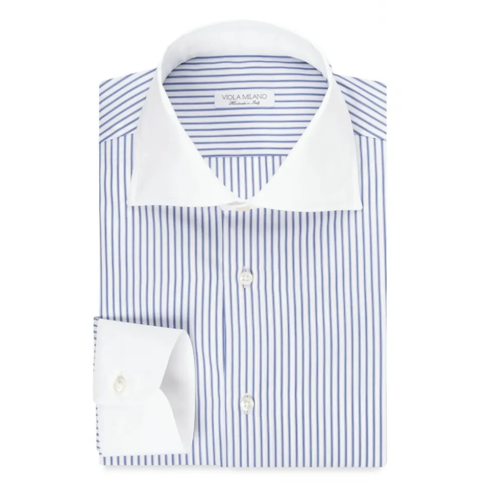 Viola Milano – Contrast Collar Shirt – Multi Stripe – Handmade in Italy – Luxury Exclusive Collection