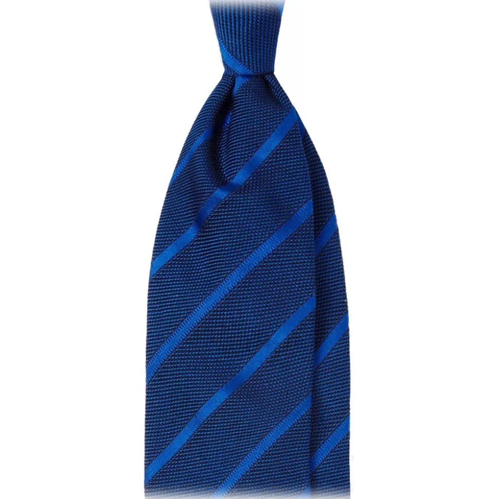Viola Milano – Contrast Stripe 3-fold Grenadine Tie – Sky Mix – Handmade in Italy – Luxury Exclusive Collection