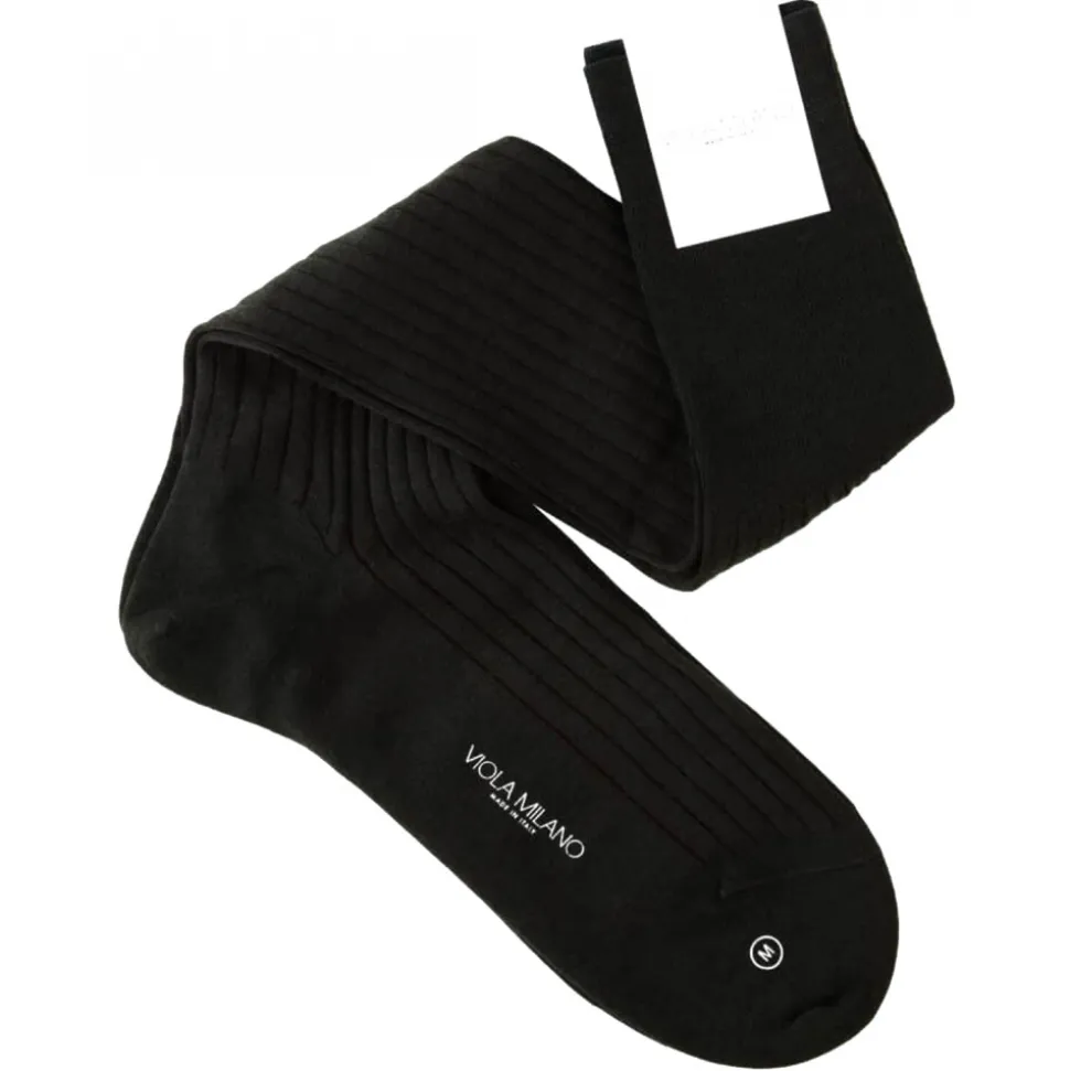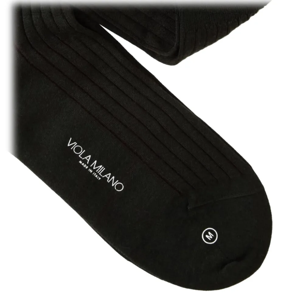 Viola Milano – Contrast Striped Over-The-Calf Cotton Socks – Forest/ Burgundy – Handmade in Italy – Luxury Exclusive Collection