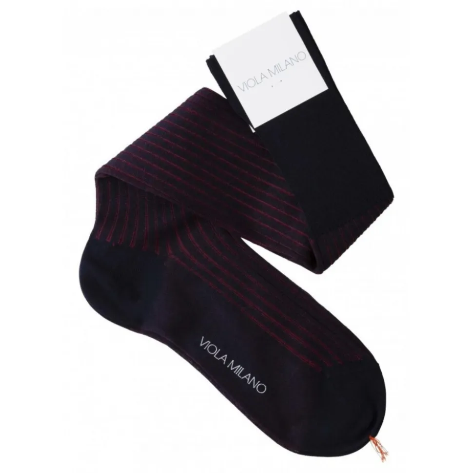 Viola Milano – Contrast Striped Over-the-Calf Cotton Socks – Navy and Wine – Handmade in Italy – Luxury Exclusive Collection