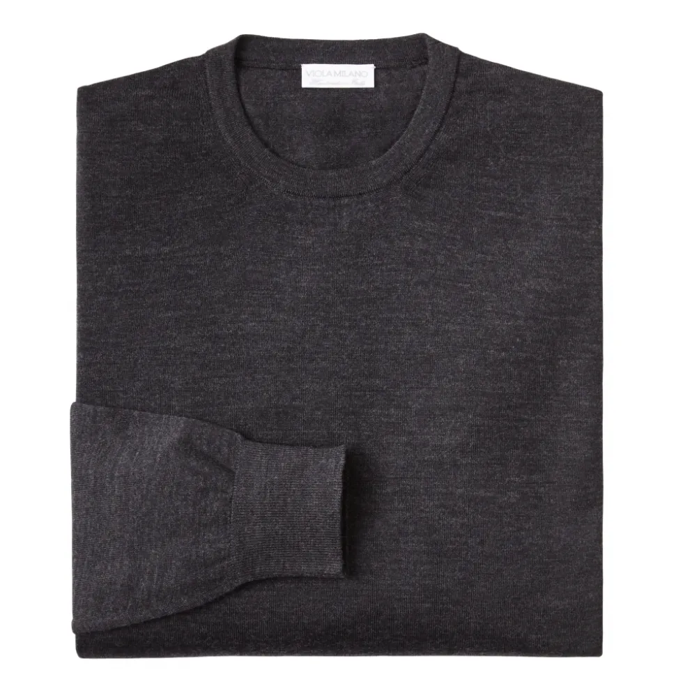 Viola Milano – Crew-Neck Merino Jumper – Dark Grey – Handmade in Italy – Luxury Exclusive Collection