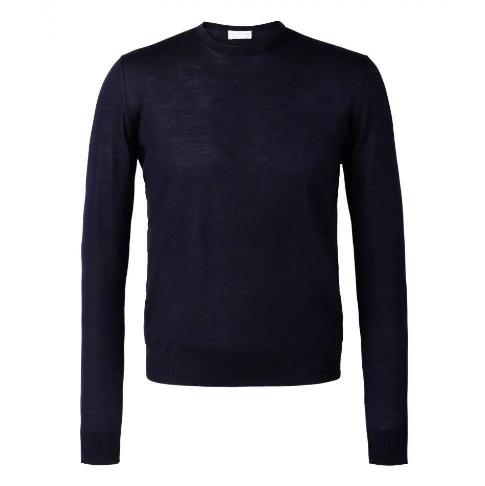 Classic 100% Merino Wool Crew-neck Sweater. Finish by hand in our own small workshop outside Milano, Italy.