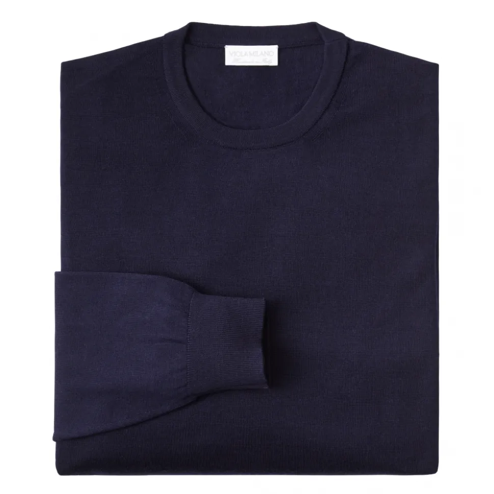 Viola Milano – Crew-Neck Merino Jumper – Navy – Handmade in Italy – Luxury Exclusive Collection