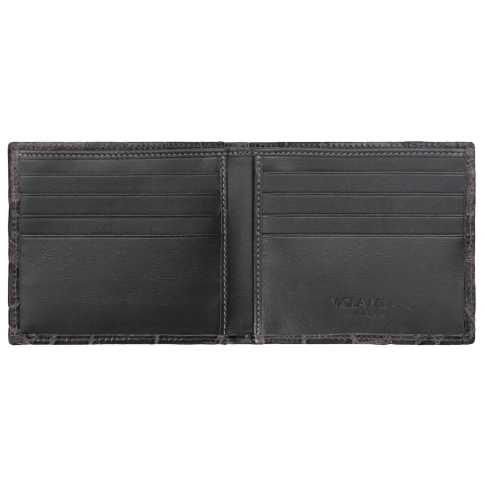 Viola Milano – Crocodile Slim Wallet – Grey – Handmade in Italy – Luxury Exclusive Collection