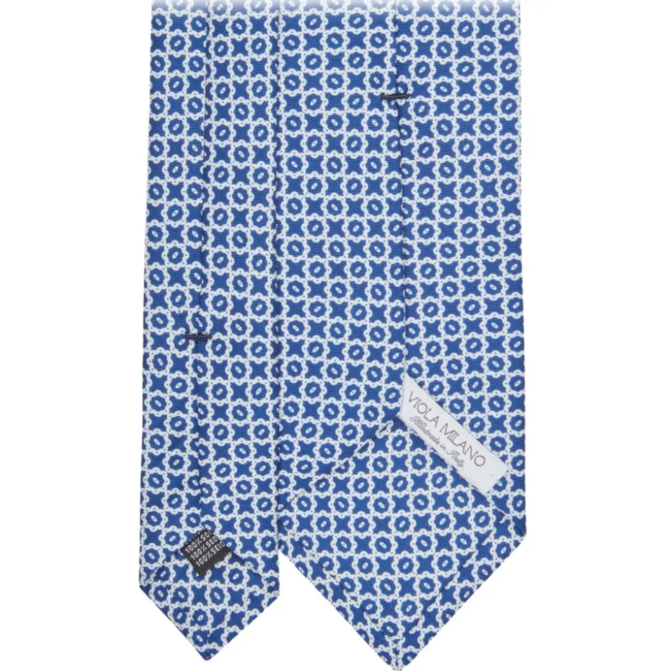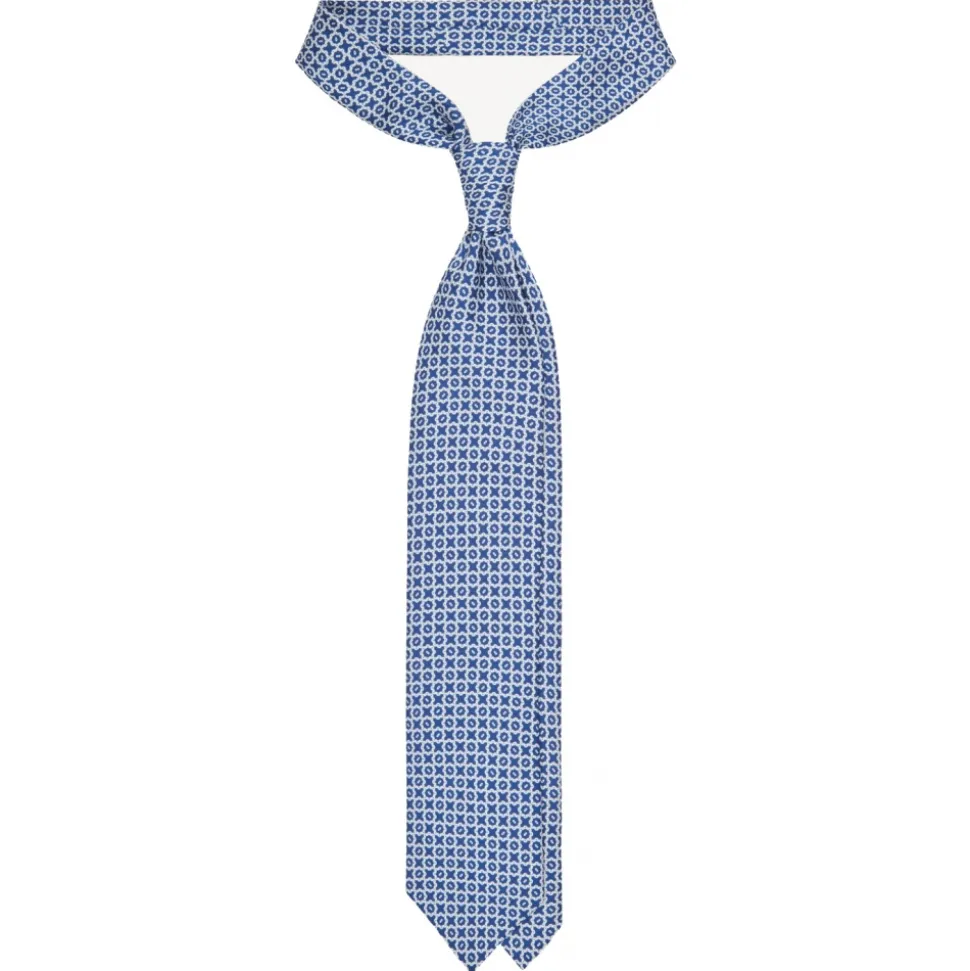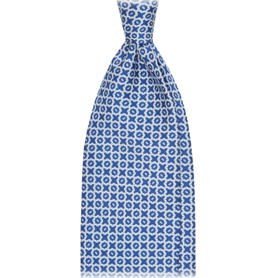 Viola Milano – Cross Pattern Handprinted Selftipped Silk Tie – Navy/White – Handmade in Italy – Luxury Exclusive Collection