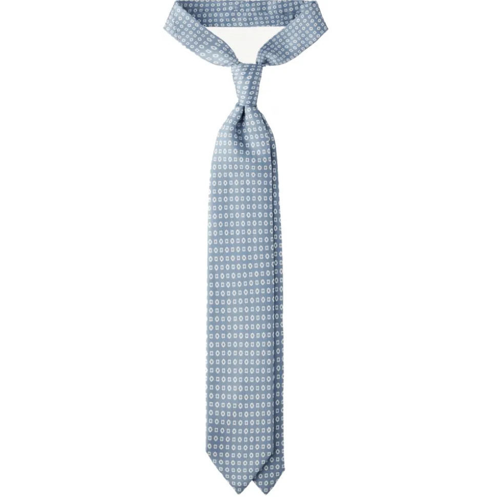 Viola Milano – Cube Pattern Selftipped Silk Tie – Ice Blue – Handmade in Italy – Luxury Exclusive Collection