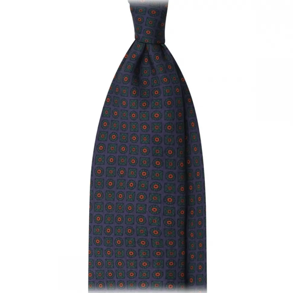 Viola Milano – Diamond Floral Handprinted Ancient Madder Silk Tie – Sea