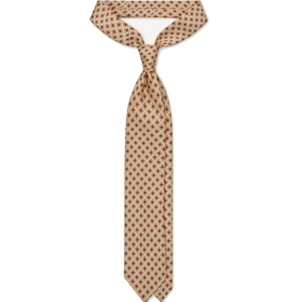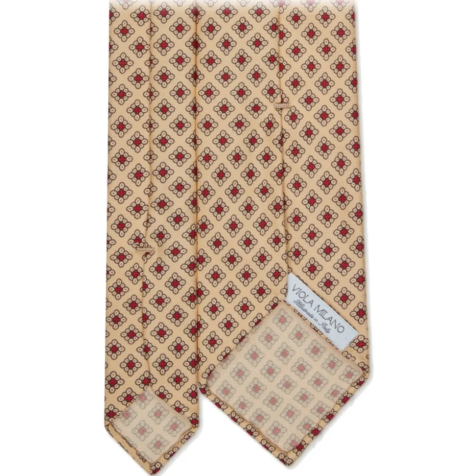 Viola Milano – Diamond Pattern 3-Fold Handprinted Selftipped Silk Tie – Yellow – Handmade in Italy – Luxury Exclusive Collection